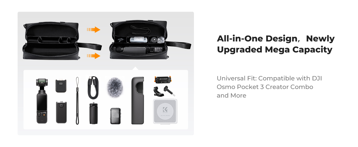K&F Concept Portable Carrying Pouch Bag for DJI Osmo Pocket 3 Camera and Accessories with Large Capacity, Elastic Compartments, Waterproof Design, and Wrist Strap – Ideal for Photography, Vlogging, Travel | JG Superstore