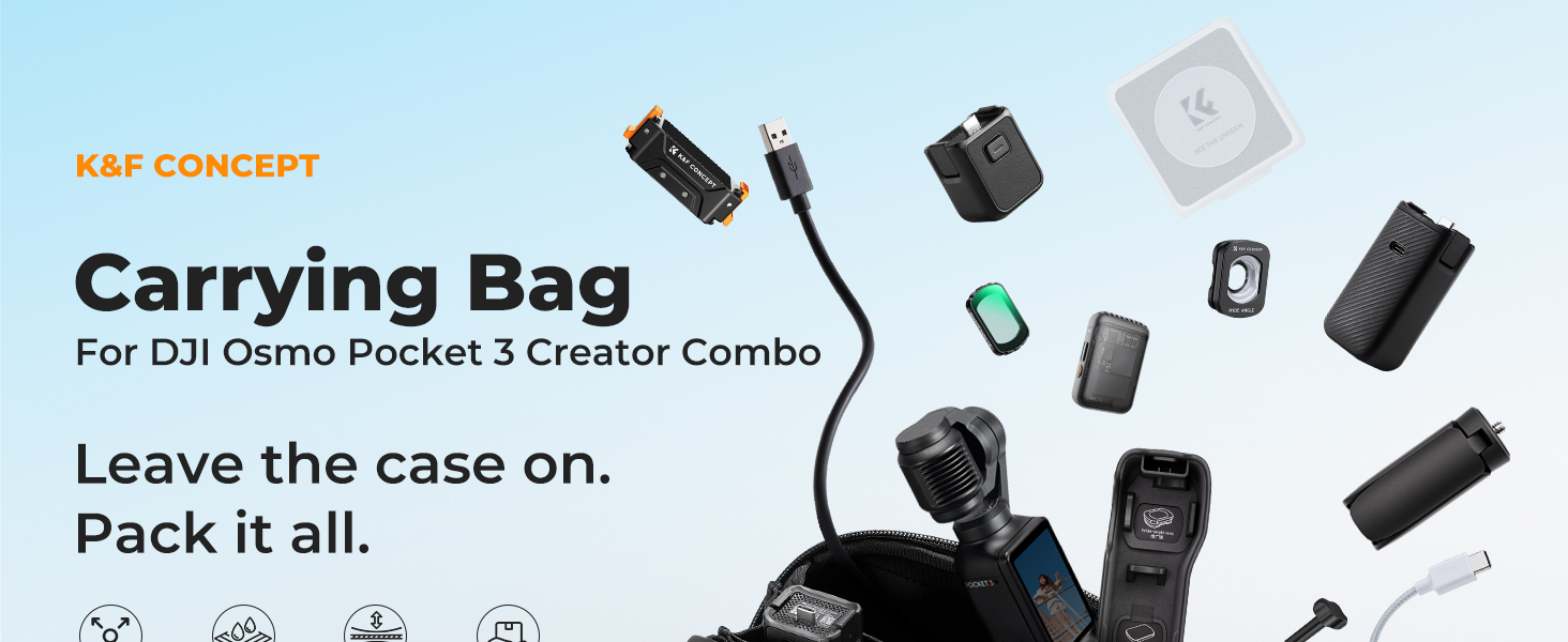 • All-round protection: This carrying case features a waterproof fabric material exterior with weather-proof zippers meticulously crafted to protect your camera from water, bumps, scratches, dust, and dirt, partition storage design allow every piece of your accessories to be stored in an orderly manner, ensuring your pocket 3 and accessories is protected in travel and daily life.