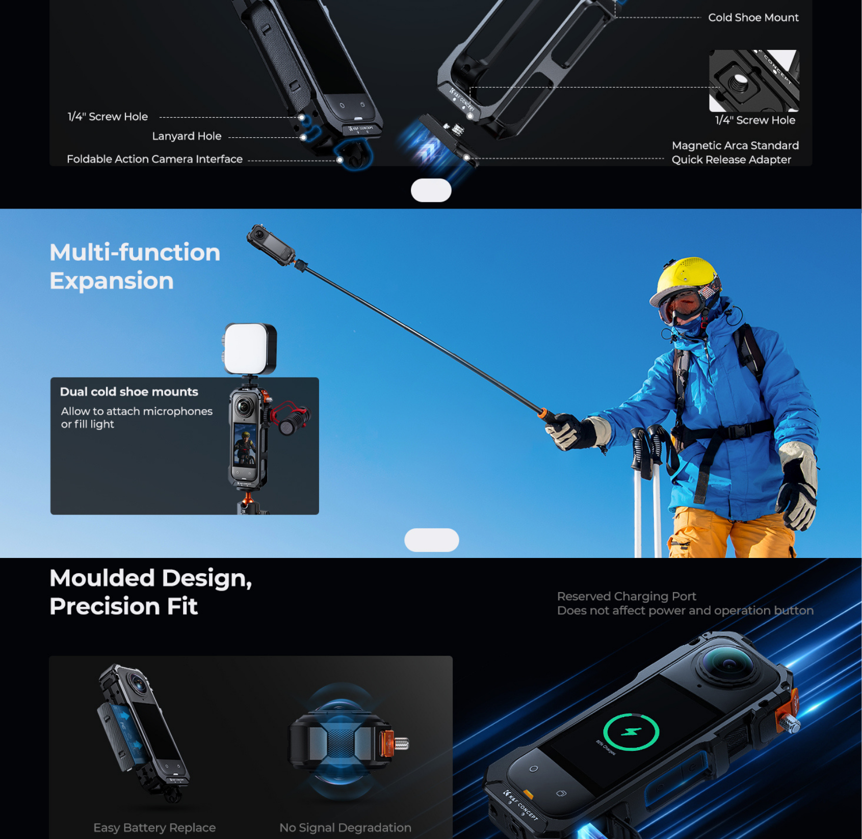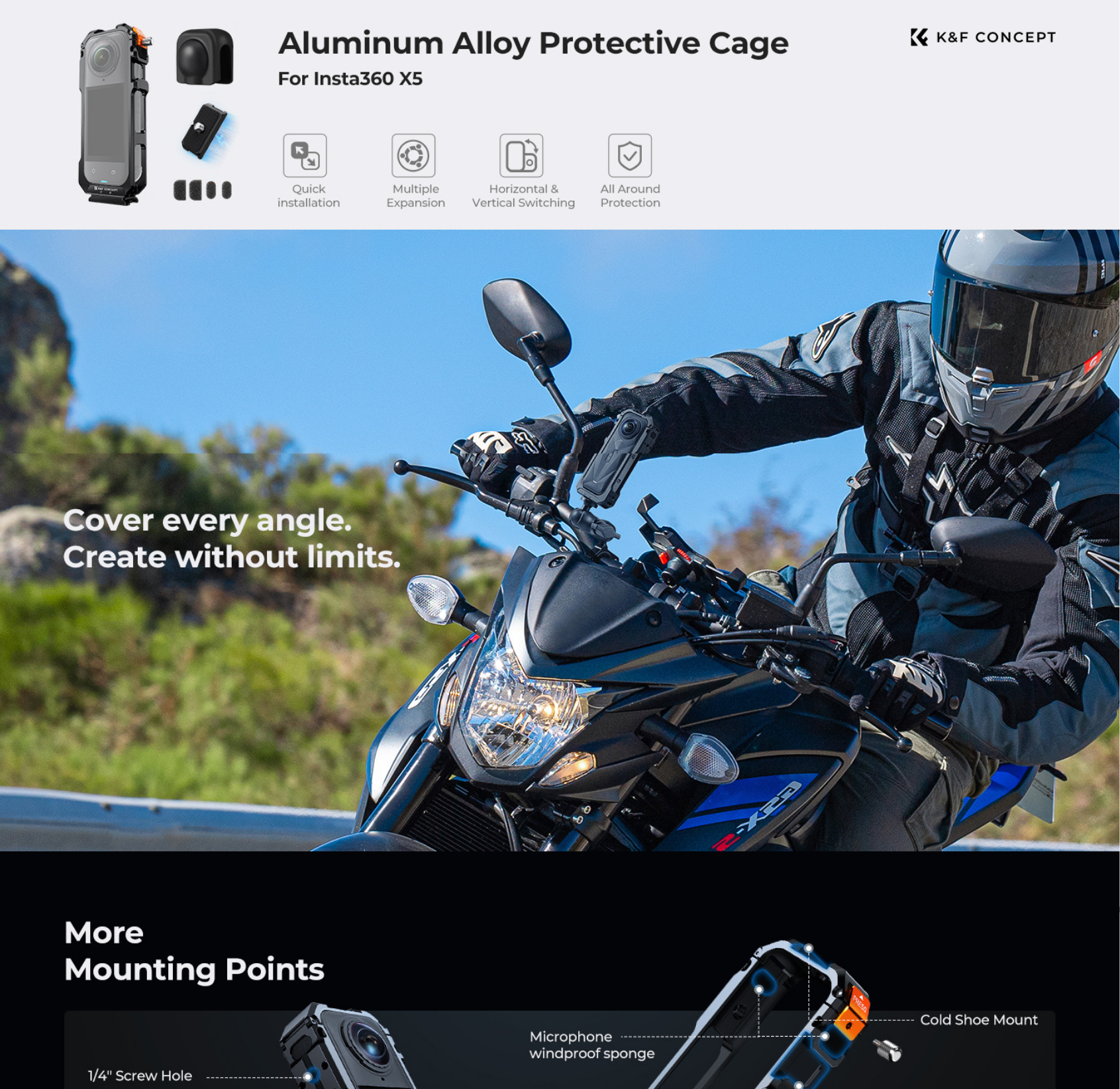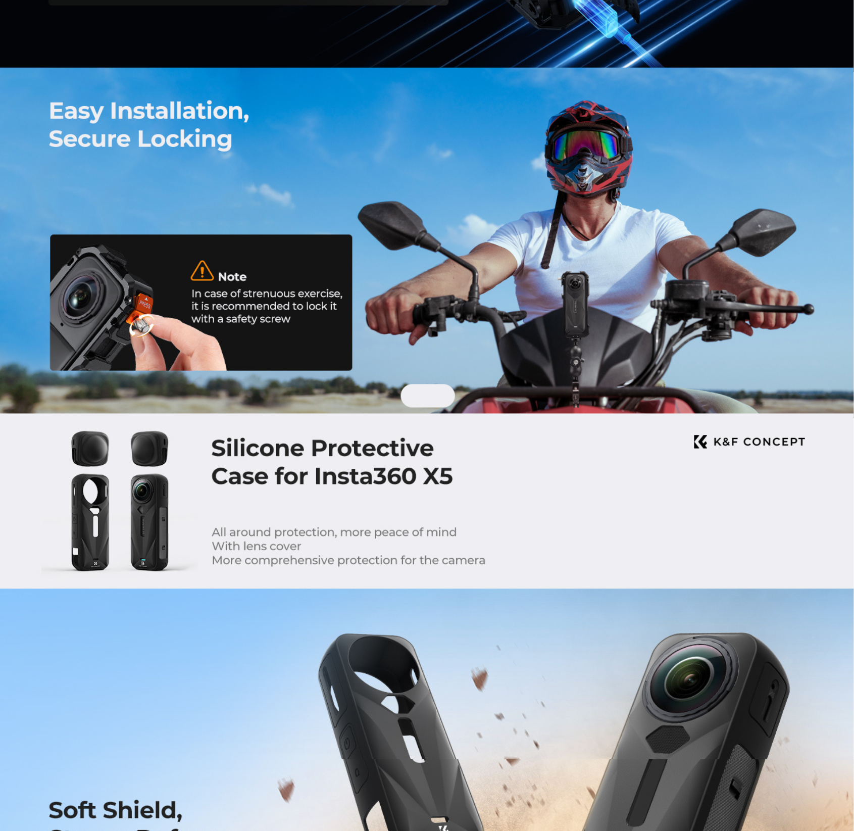 The K&F Concept camera cases for Insta360 X5 are designed to provide reliable protection while maintaining full functionality for everyday shooting. Offering a precise fit with easy installation, ensuring access to buttons, ports, and essential features without interruption. Lightweight and durable, they help safeguard your camera from scratches, drops, and daily wear, making them ideal for travel, vlogging, and action use.