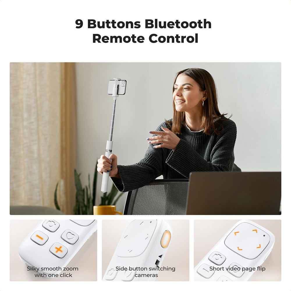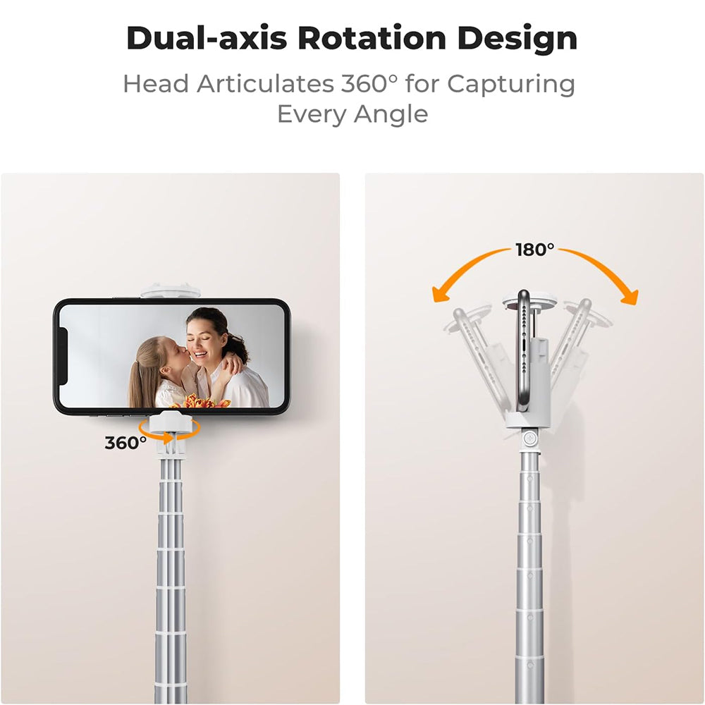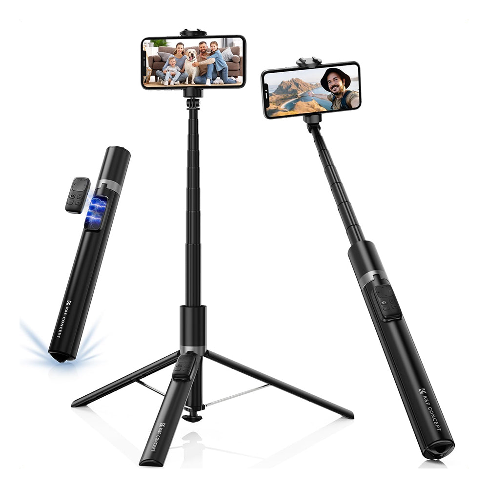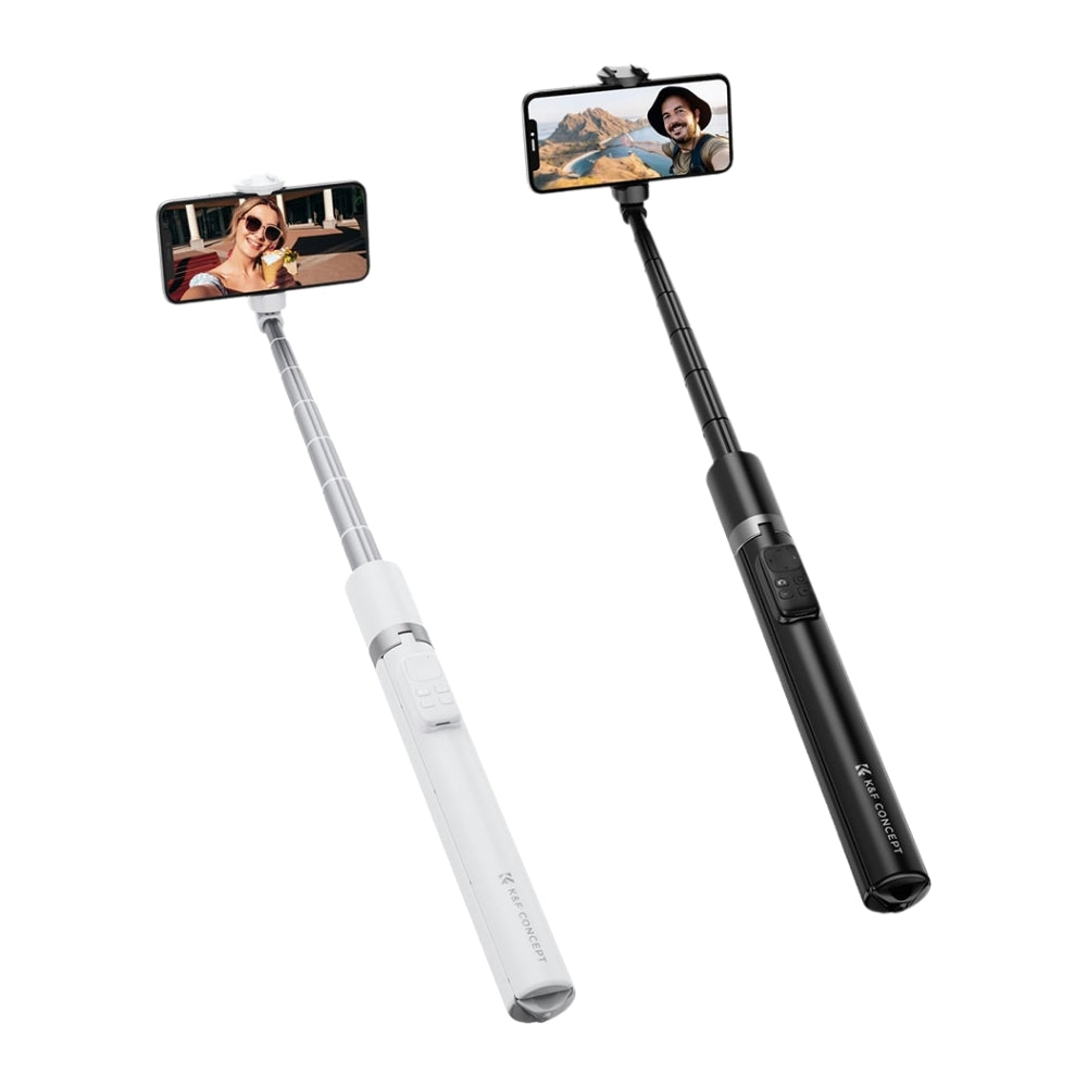K&F Concept Rotatable Automatic Tripod Selfie Stick with 9-Button Bluetooth Remote, 68.9" (157cm) Max Height, Cold Shoe Mount, Quick Open & Fold Magnetic Legs for Smartphone Live Streaming Travel & Content Creation - White, Black