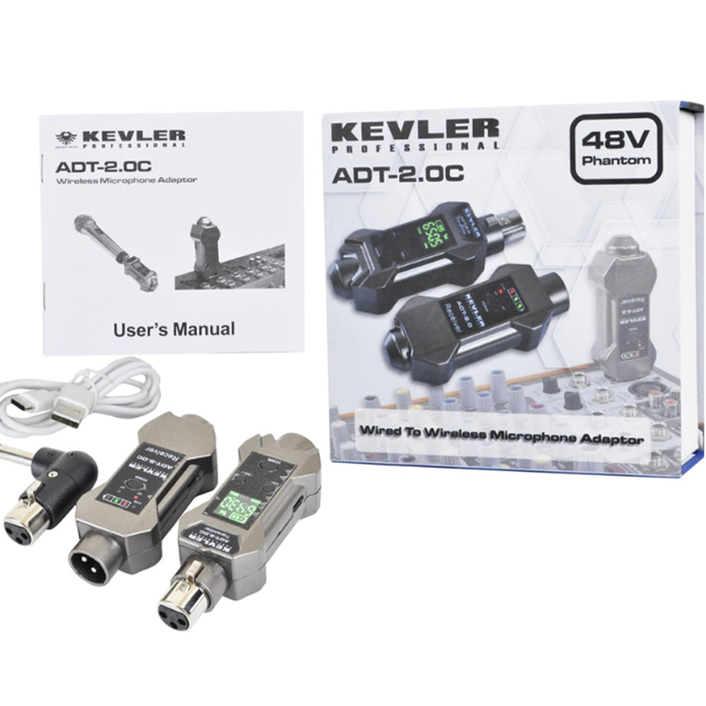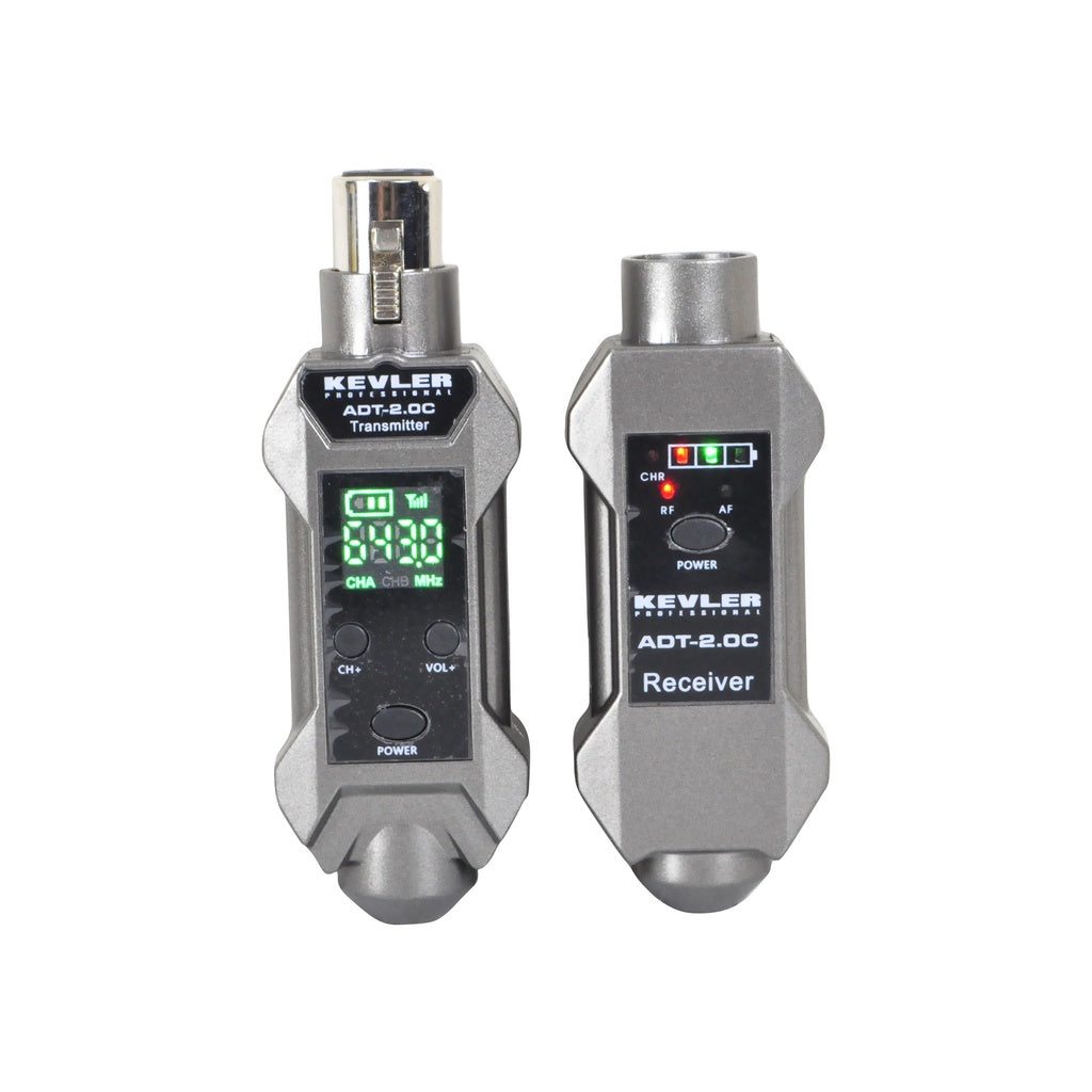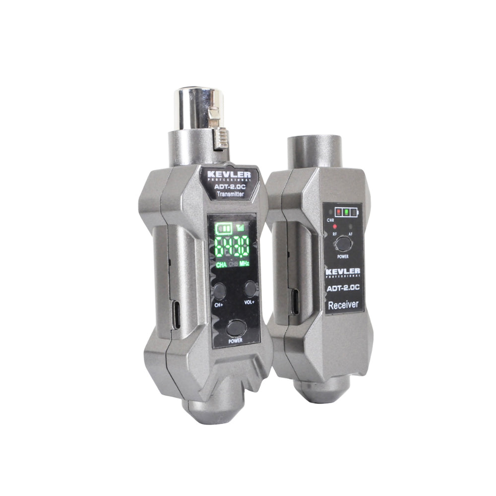 KEVLER ADT-2.0C Portable Wireless Rechargeable Microphone Adaptor with Transmitter & Receiver, 800mAh Battery, 48V Phantom Power, 80m Max Range and XLR / 6.35mm Mic Input