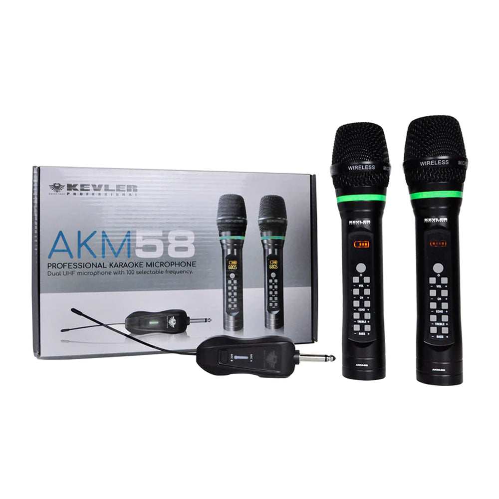 KEVLER AKM-58 Dual Portable Handheld Wireless Microphone with Built-in Battery, LCD Display, 50 Selectable Frequencies and Direct Master Adjustment