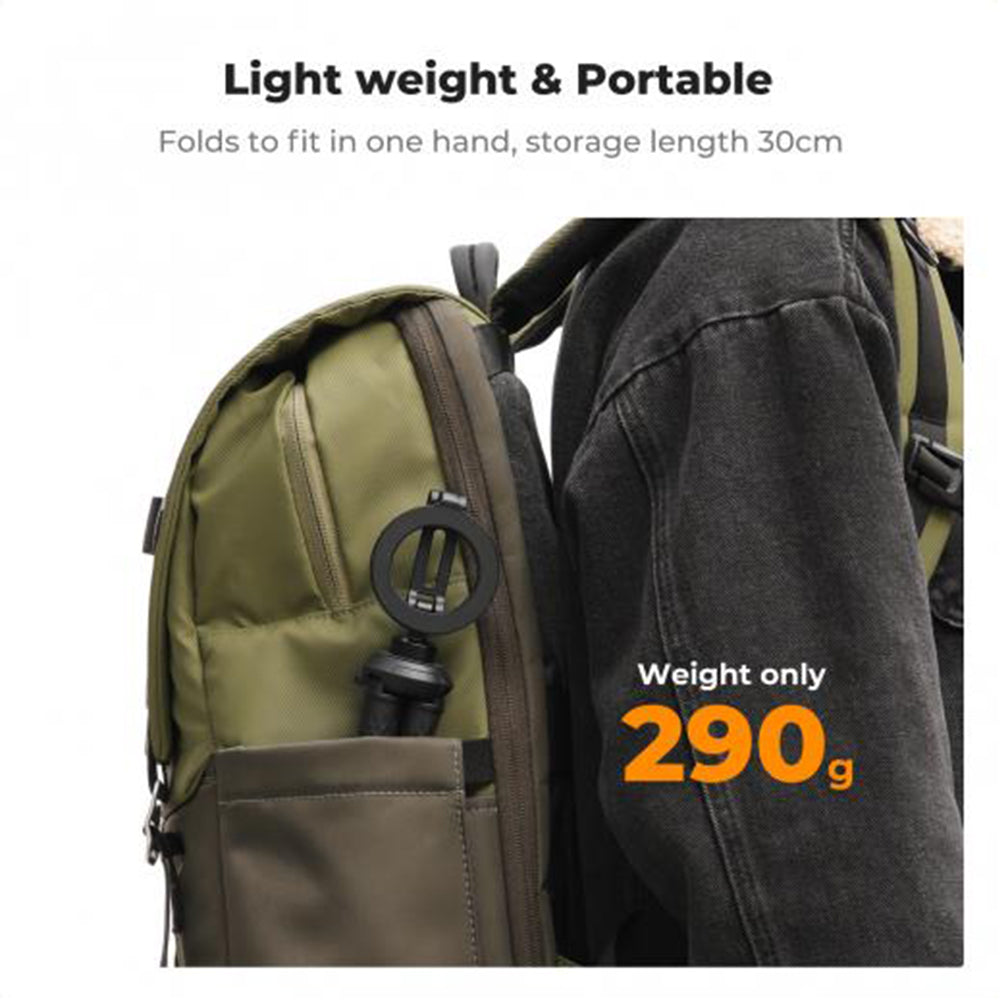 Lightweight and Portable: Mini tripod weighs only 395g, folds to a compact 36 cm for easy storage and transport.