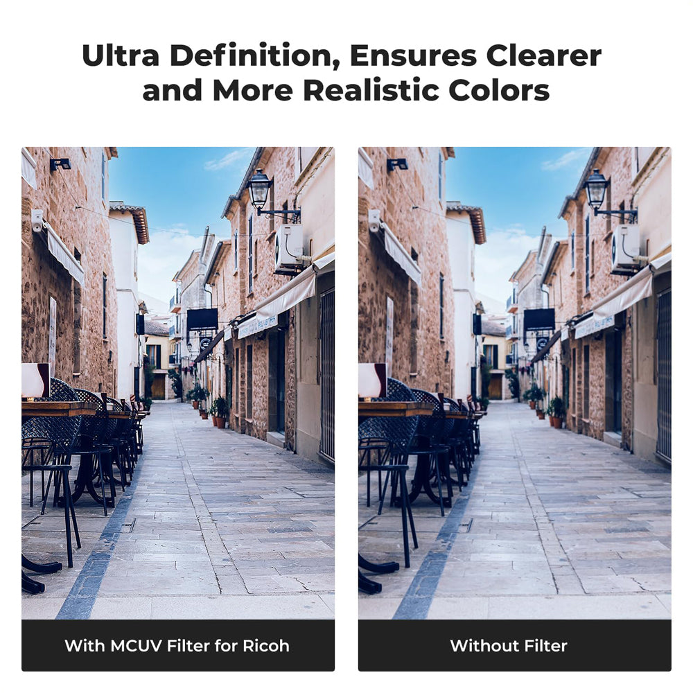 - Compatibility: The Ultra Slim Multi-Coated UV filter is designed for Ricoh GR IIIx, GR IIIx HDF, GR III, GR III HDF and GR II digital compact cameras.