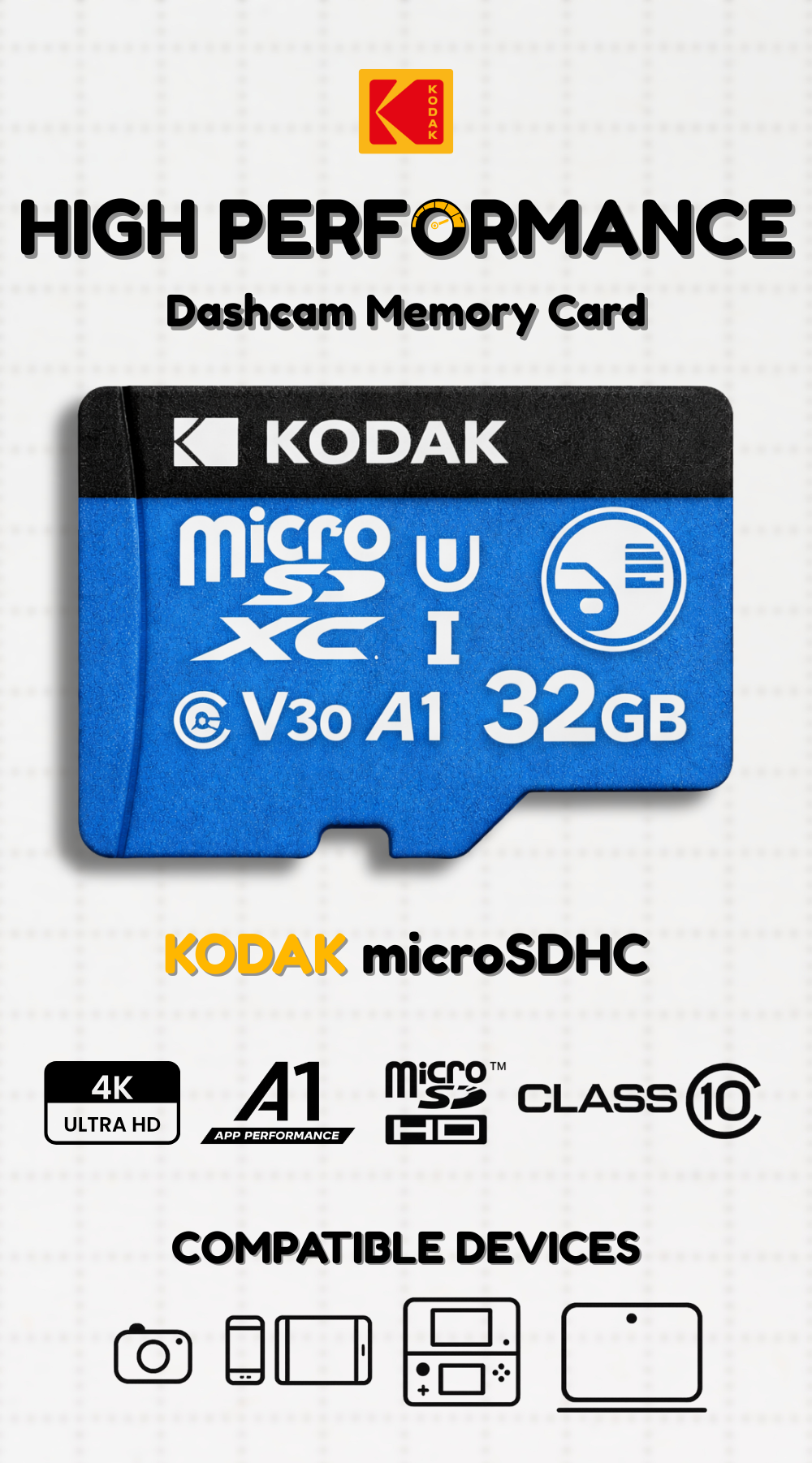 KODAK 32GB MicroSD UHS-I SDXC A1 V30 U3 Memory Card 4K Ultra HD