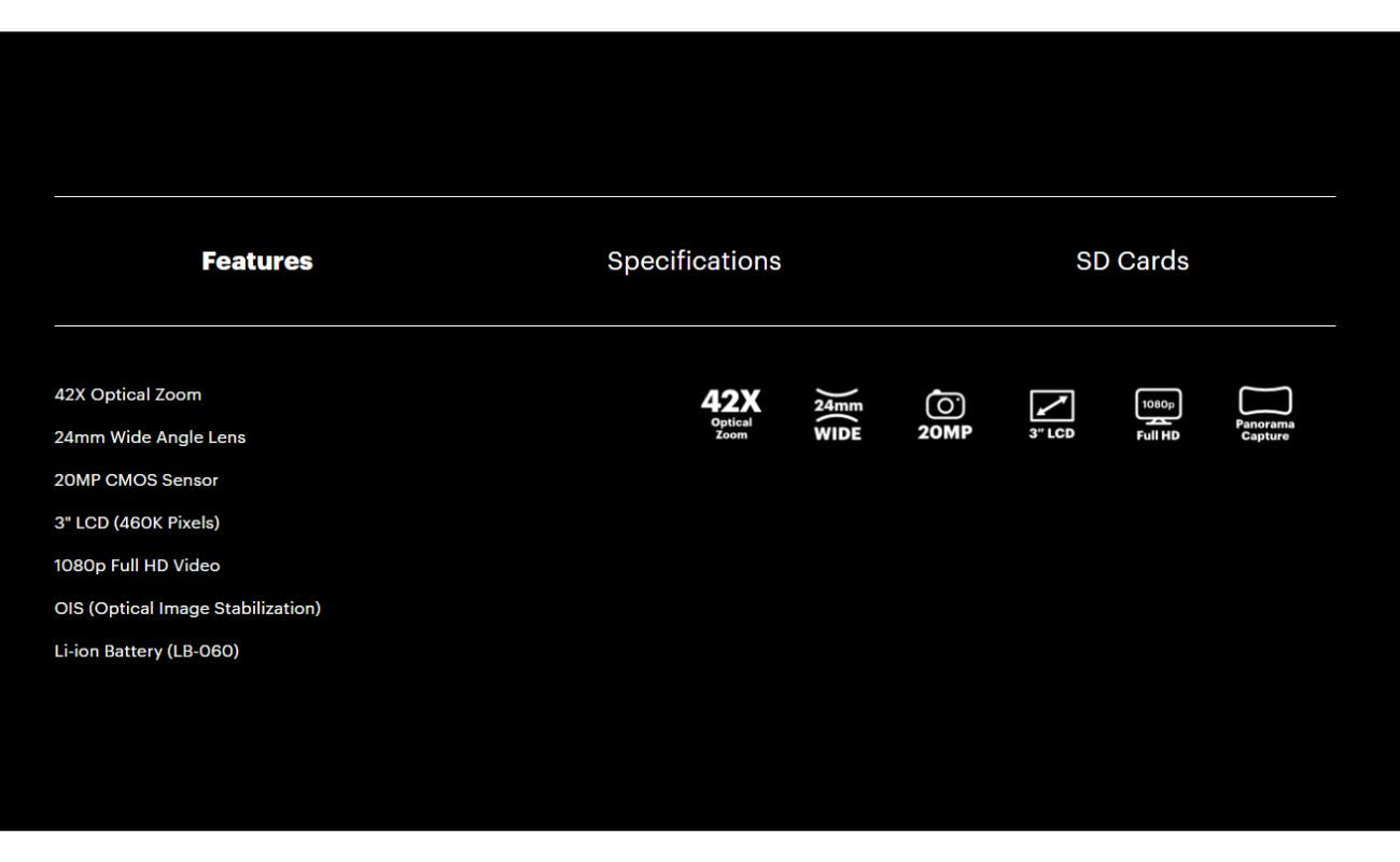 • 42X Optical Zoom - 24mm Wide Angle Lens