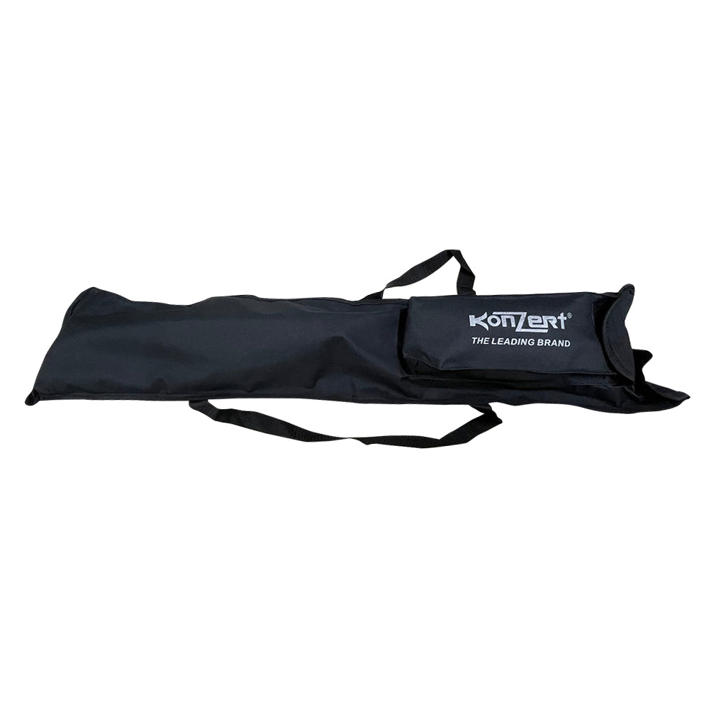 The Konzert MK-101 is a Personal Microphone Kit that includes a dynamic microphone, a boom type tripod microphone stand, a 5m PL55 to XLR female microphone cable, a microphone bag, and a carry bag. It can be used for travel, live performance, home KTV, live band, and PA system.