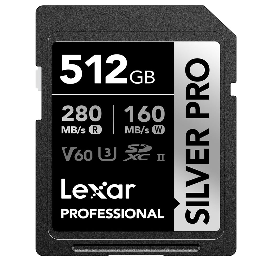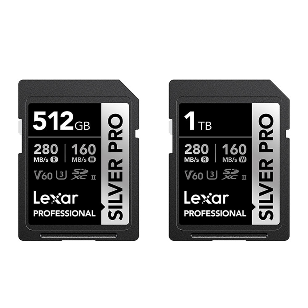 Lexar Professiol 1TB 512GB Silver Pro SDXC V60 U3 UHS-II Class 10 Memory Card with 4K Video Recording, Max 280MB/s Read Speeds for Videography and Photography