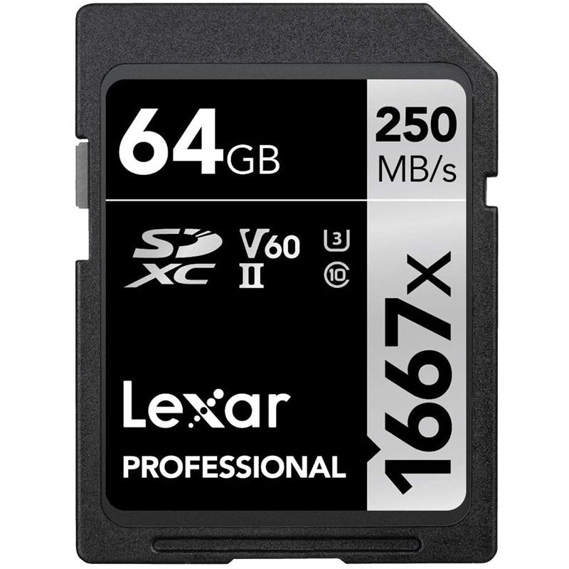 - Lexar Professional 1667x SDXC UHS-II Memory Card allows you to quickly capture and transfer high-quality photos and 1080p full high-quality, 3D and 4K videos. This high-speed memory card uses UHS-II technology (UHS Speed Level 3 (U3)) and when used with SD UHS-II card readers, it provides a read transfer speed of up to 250MB/s 1667x, thereby greatly accelerating the workflow. Using a digital camera, film-grade camera or 3D digital camera, you can use the latest photo and video functions to shoot high-quality images and wonderful 1080p full-HD, 3D and 4K videos. It's high-speed performance from start to finish dramatically accelerate your workflow, allowing you to save time to re-focus on contemporary photography. In order to achieve versatility, this memory card is also backward compatible with UHS-I devices, up to the maximum of UHS-I speed capability. This memory card is also suitable for older non-UHS-I devices. When used with non-UHS devices, the performance can reach level 10 speed. Comes in 64 GB storage capacity.