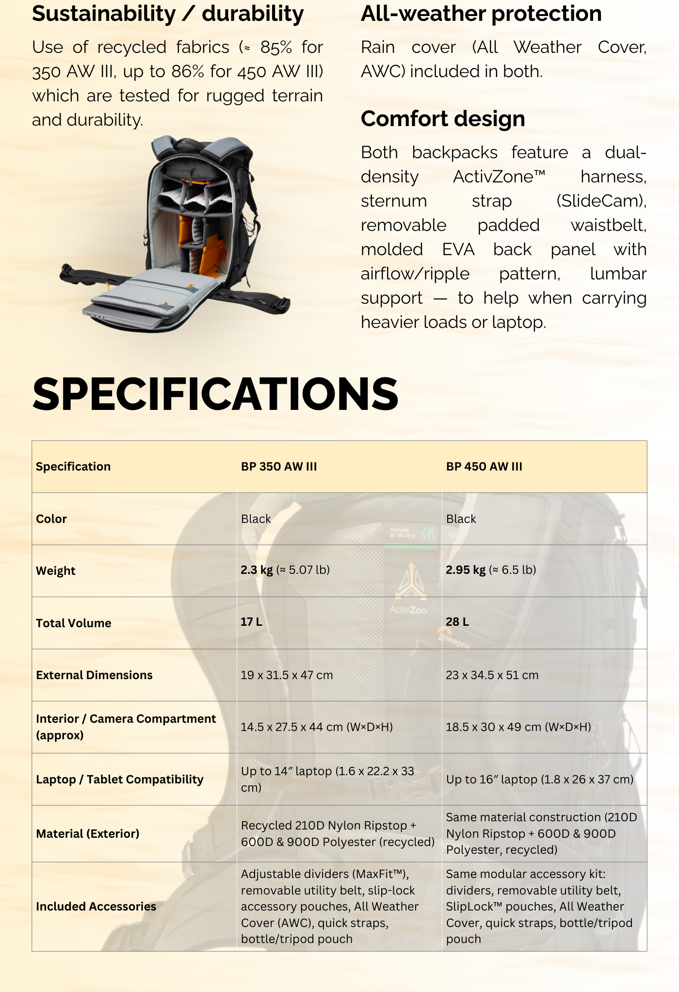 Lowepro ProTactic 17 BP 350 17L | 450 28L AW III Backpack