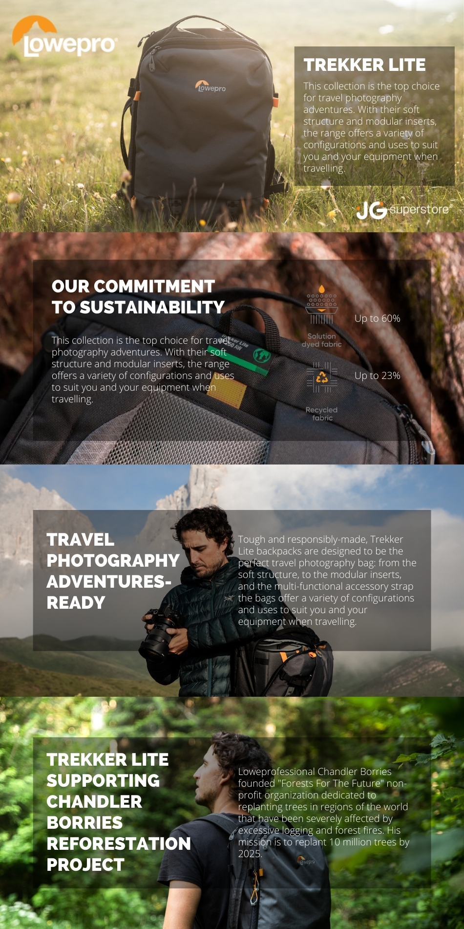 The Lowepro Trekker Lite series offers versatile, travel-ready camera backpacks that combine everyday carry convenience with serious photo gear protection. Whether you bring a compact mirrorless setup or a fuller camera kit with lenses and laptop, these bags adapt — giving you a reliable backpack for travel, street shooting, or content creation while keeping your gear safe, organized, and ready to go.
