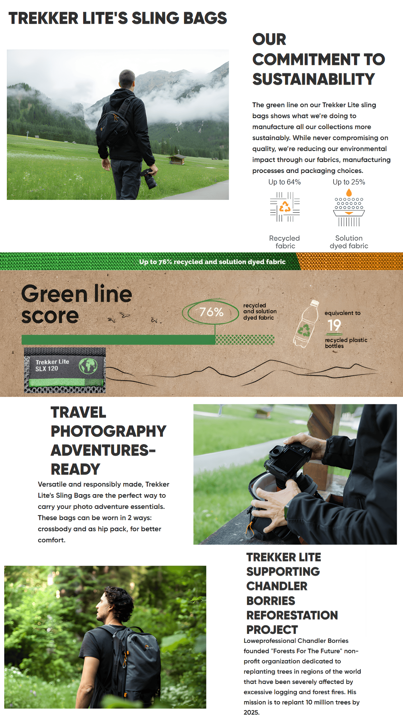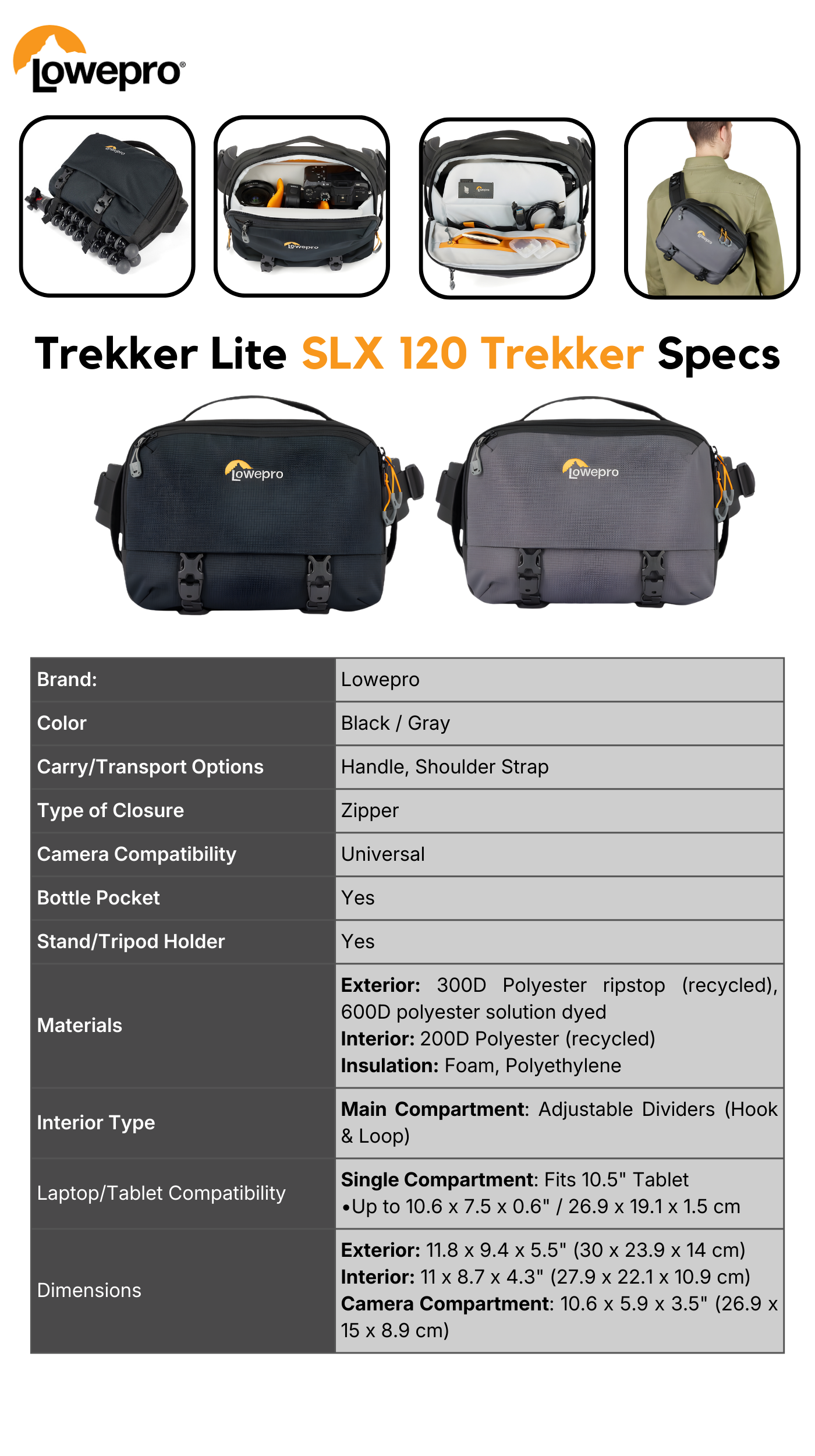 The Trekker Lite collection is the top choice for travel photography adventures. The SLX 120 is a discrete travel companion, which carries your essentials and keeps your gear close to your body. It can be worn either as a sling or on your hip.