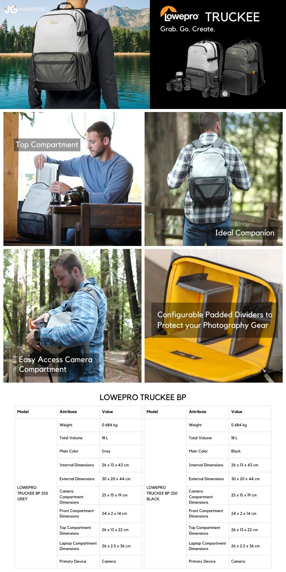 The Lowepro Truckee BP 250 LX is a simple, comfortable camera daypack with durable materials and easy organization. It features a 50/50 split design with open top storage for essentials and a bottom compartment for a compact DSLR or mirrorless camera plus 1–2 lenses, or a small drone/video kit. It includes mesh side pockets and compression straps for a water bottle or compact tripod, a tricot-lined quick-access pocket for small items, and a trolley pass-through for rolling luggage. Ideal for festivals, light hikes, and everyday adventures.