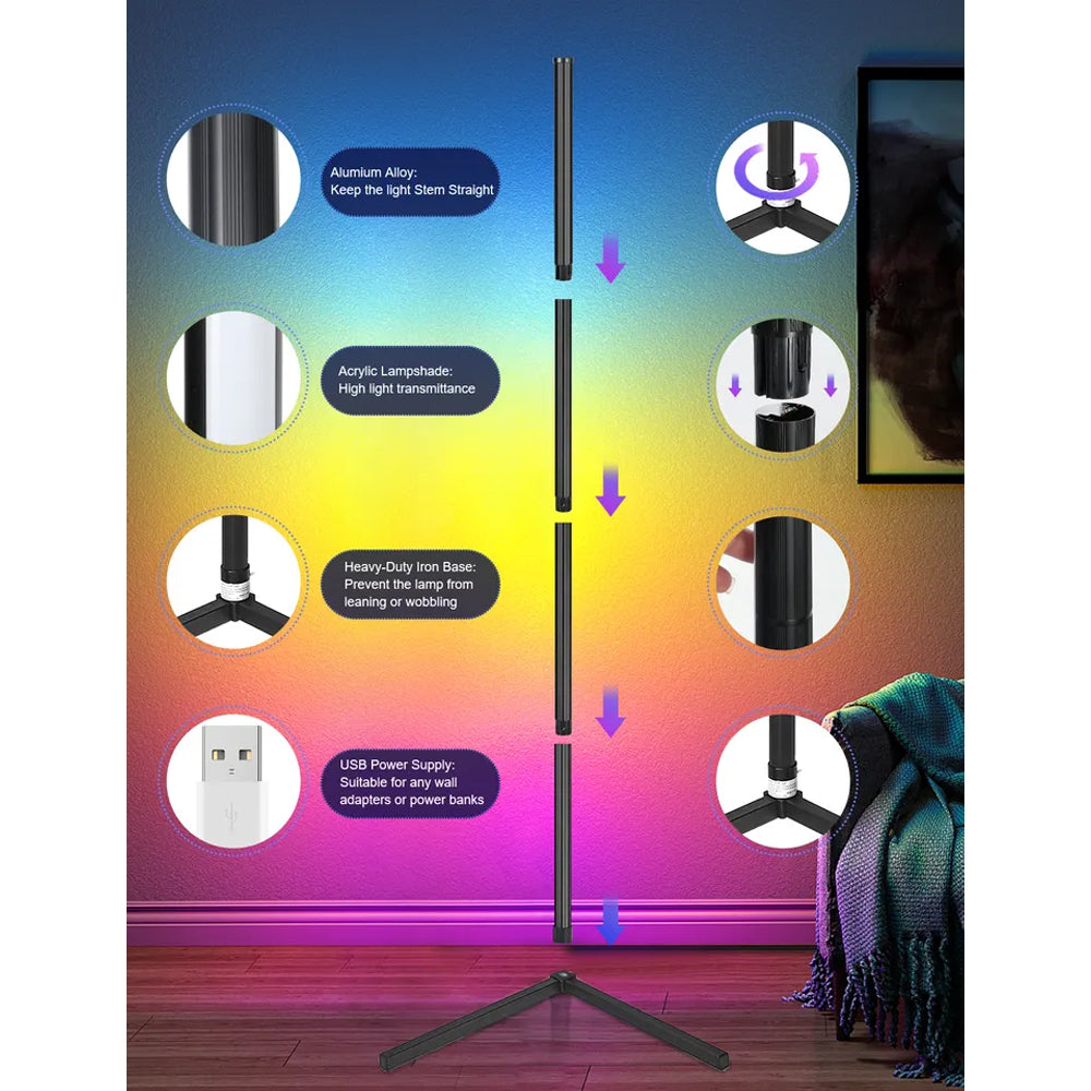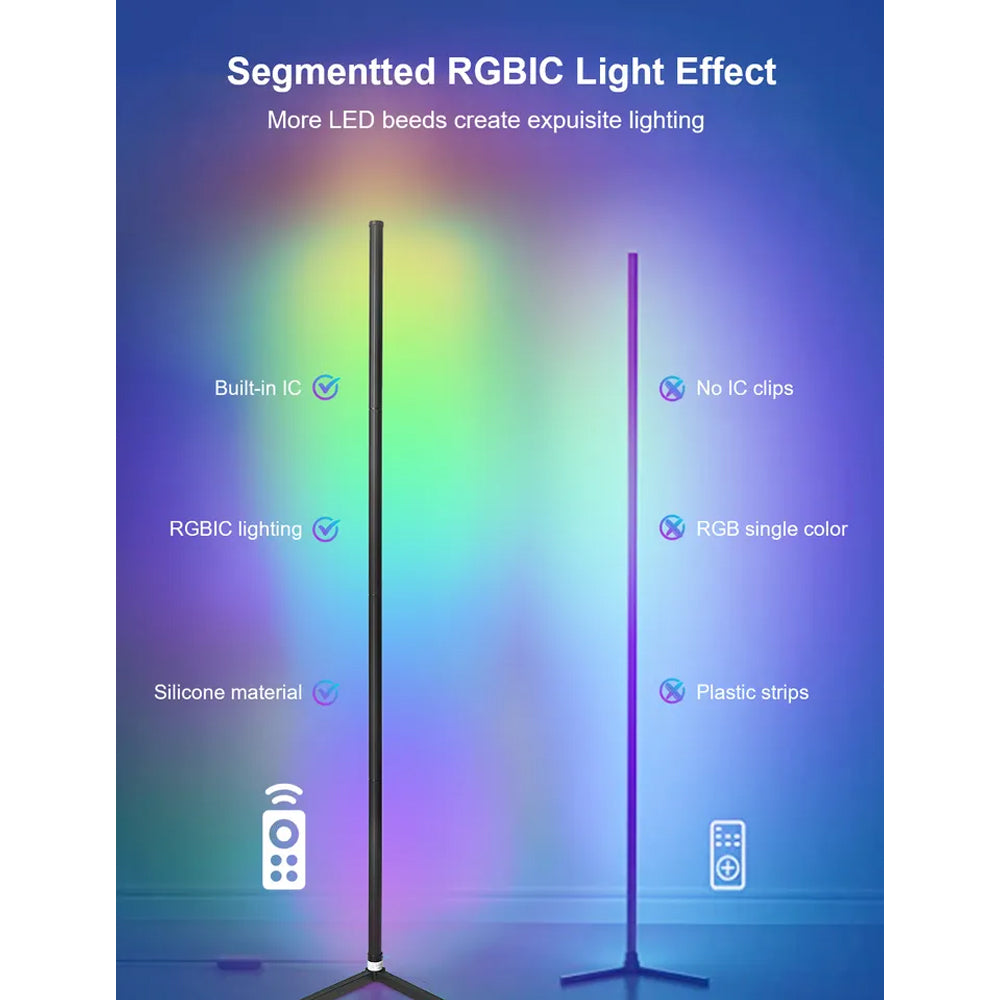 Luxceo F0102 RGB LED Corner Light Tube Stand Lamp with Remote and App Control - Photo & Video Studio Lighting