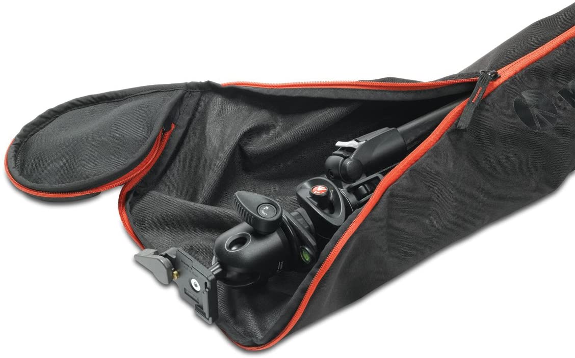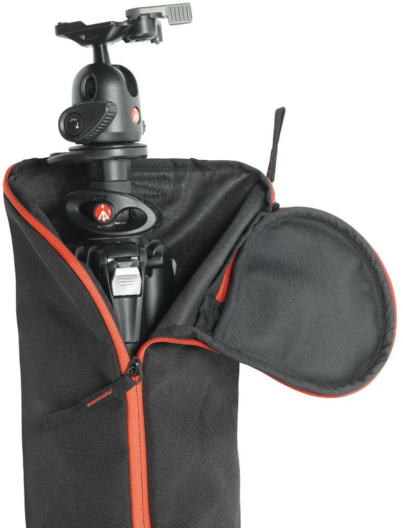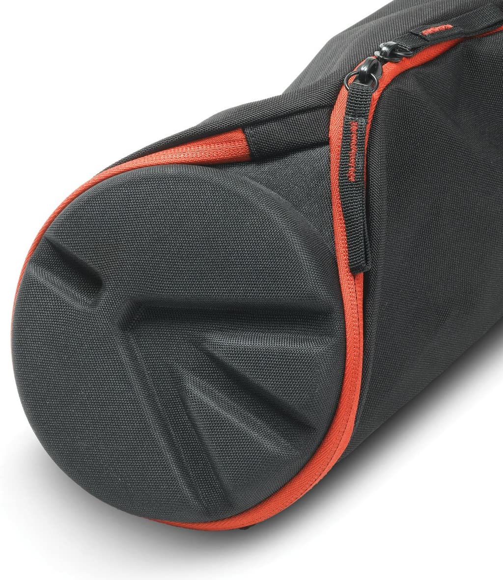 The Manfrotto by Bogen Imaging MBAG80N Tripod Bag (Black) is an unpadded ballistic nylon bag designed to carry Manfrotto tripods with head up to 30.31" long. However, it's always best to leave 1-2 inches of free space to make storing your tripod easier. The end cap is padded to offer protection to the tripod head. The zipper extends down the length of the bag, but also fully opens the top end of the bag. The end opening allows for faster "quiver" style extraction and insertion of the tripod.