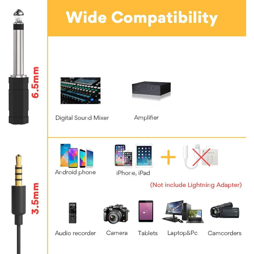 - WIDE COMPATIBILITY: The 3.5mm TRRS Jack is compatible with computer, almost Smartphones, tablet, pad what surprise is ONE MORE 6.5mm ADAPTER is included, ideal for those who use DSLR, camera, headset and professional audio devices, like Canon EOS Digital SLR Camera, Canon PowerShot, Nikon Coolpix Digital Camera, PA System, Amplifier and so on