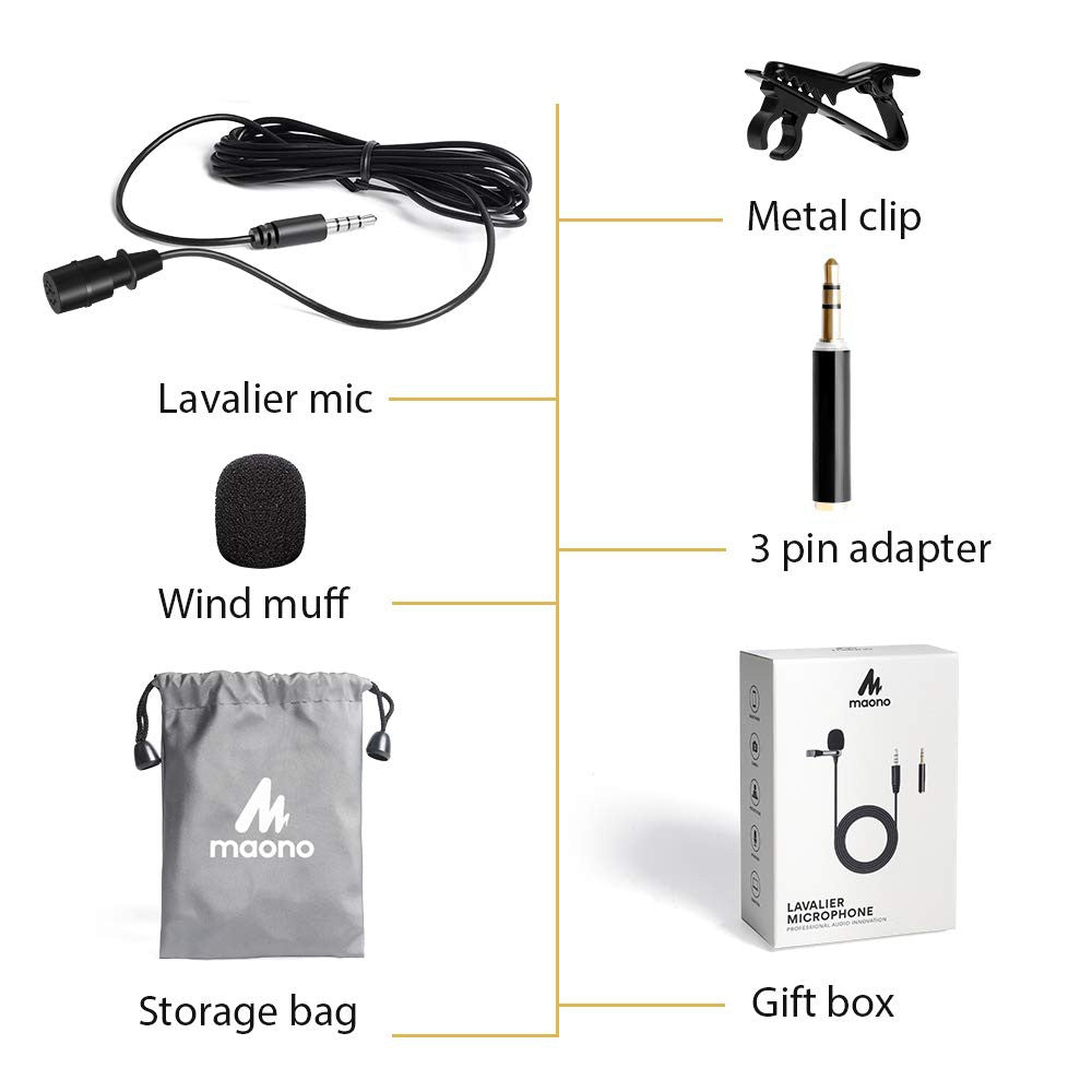 Maono AU-402L Cost-Effective Multipurpose Lavalier Microphone 3.5mm Jack Smartphone Tablet Laptop PS4 or Skype,YouTube, Recording, Podcasting and Webir