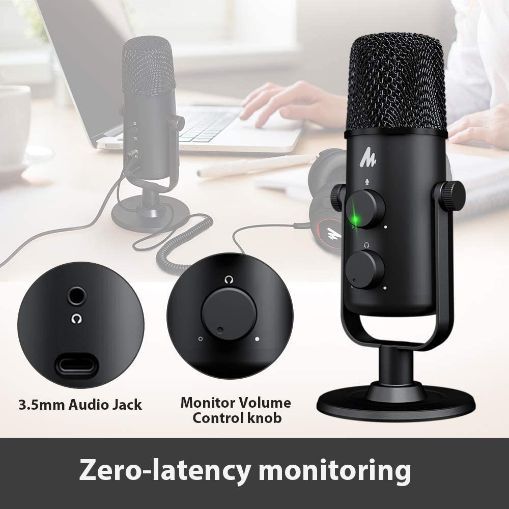 Maono AU-903 903 Computer Microphone Podcast USB Condenser Mic with Switchable Polar Patterns & Mute Button, Zero-Latency Monitoring, Plug and Play for Recording, YouTube, Podcast, Gaming, Skype, Videos