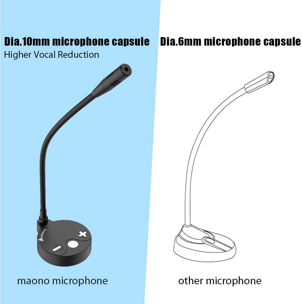 MAONO GM10 microphone is equipped with a Dia.10mm microphone capsule and professional sound chipset, which lets the microphone perform perfectly in reproducing your voice richer and thicker than the Dia.6mm microphone capsule. Flat frequency response: 100Hz-8kHz, --Extended frequency response is excellent for a meeting, speech, conference. The cardioid pick-up pattern minimizes background noise and isolates the main sound source.