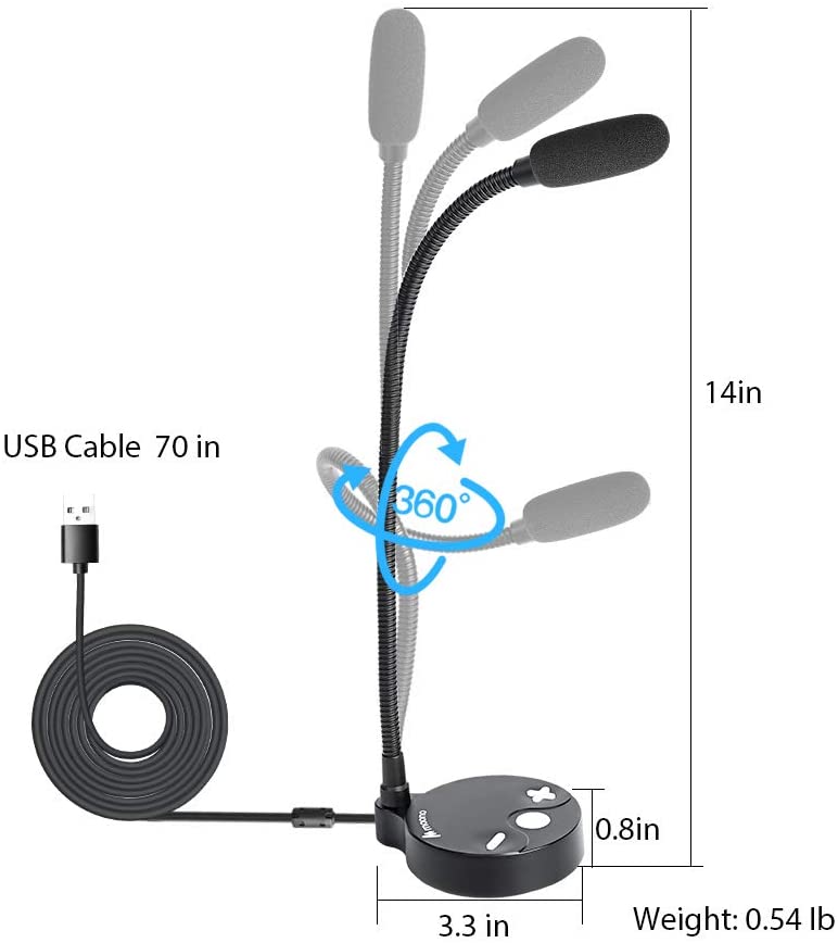 Not only microphone we use metal material, but also a microphone base. Anti-fall and durable. The anti-slip mat at the bottom of the microphone base keeps it stable on desktop. 360-degree flex microphone’s angle and 70 in the USB cable to meet your more needs.