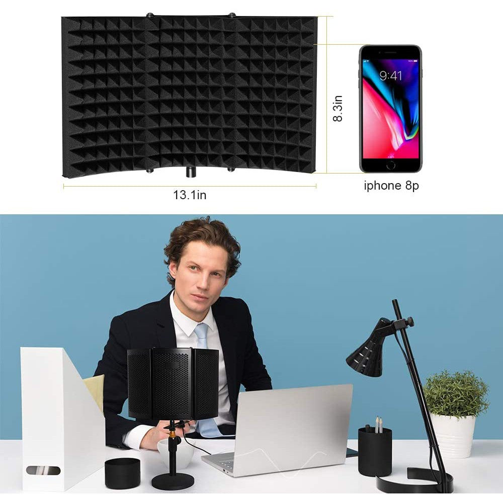 • EASY TO USE: The microphone isolation shield can be fixed on a desk or tabletop, and also can be mounted to a microphone stand. Perfect for professional vocal/acoustic recording and podcasting sound booth