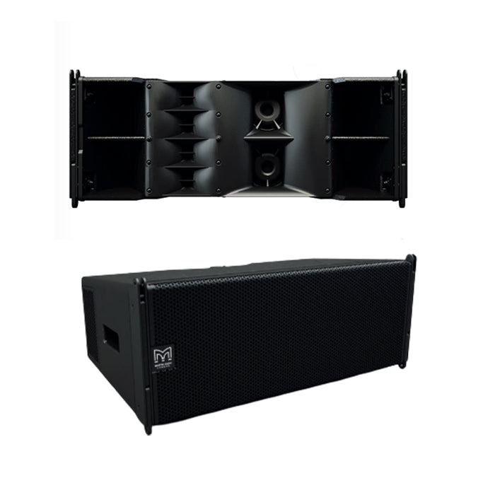 LF: 2 x10” (250mm)/2.5” (63mm) voice coil, long excursion, vented pole, neodymium magnet drivers, Hybrid® slot-horn loaded