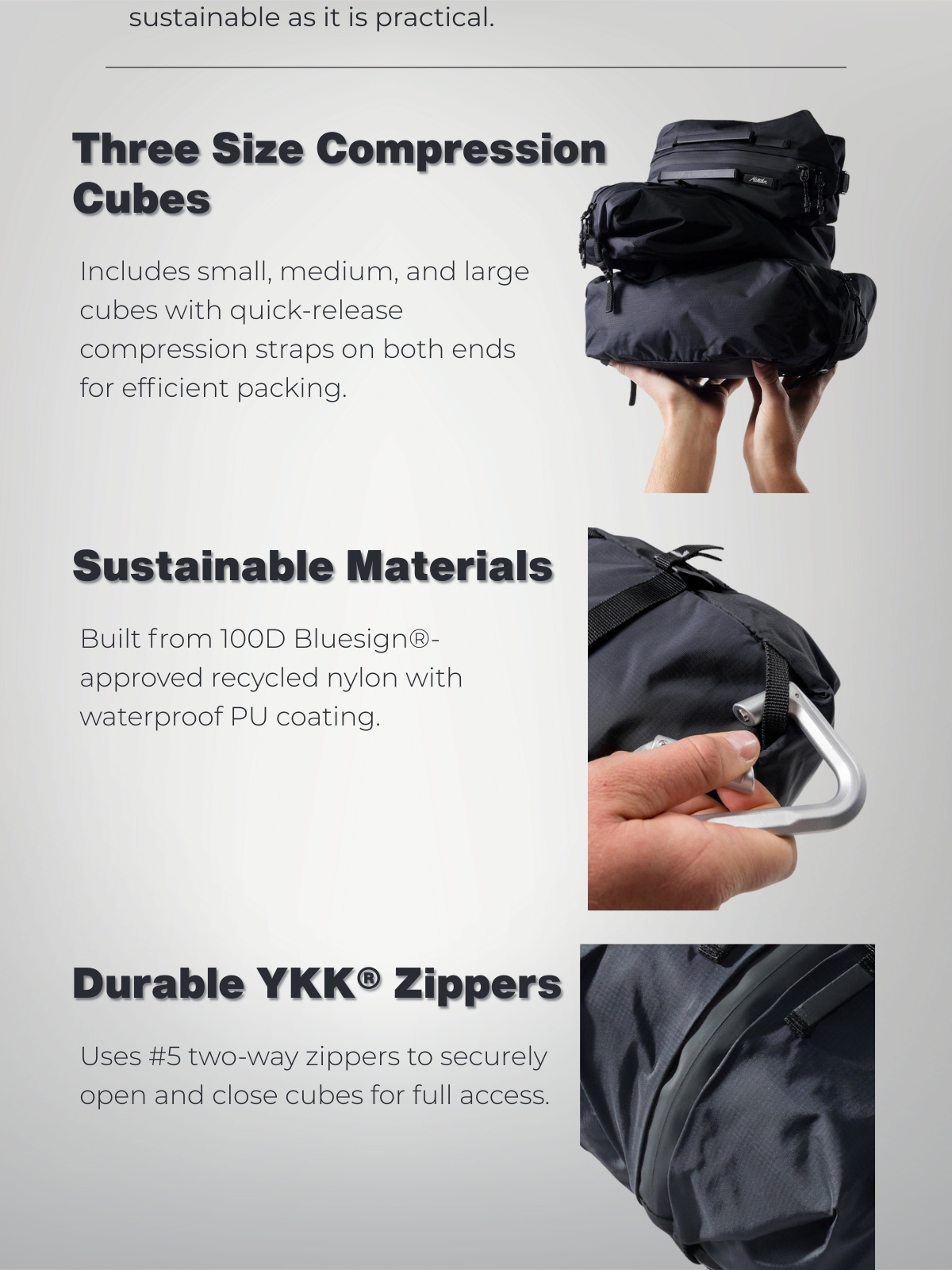 Matador Gear Cube Set 3-Pack 5L 3.9L 2.5L Utility Pouch Weatherproof for Travel & Outdoor Equipment