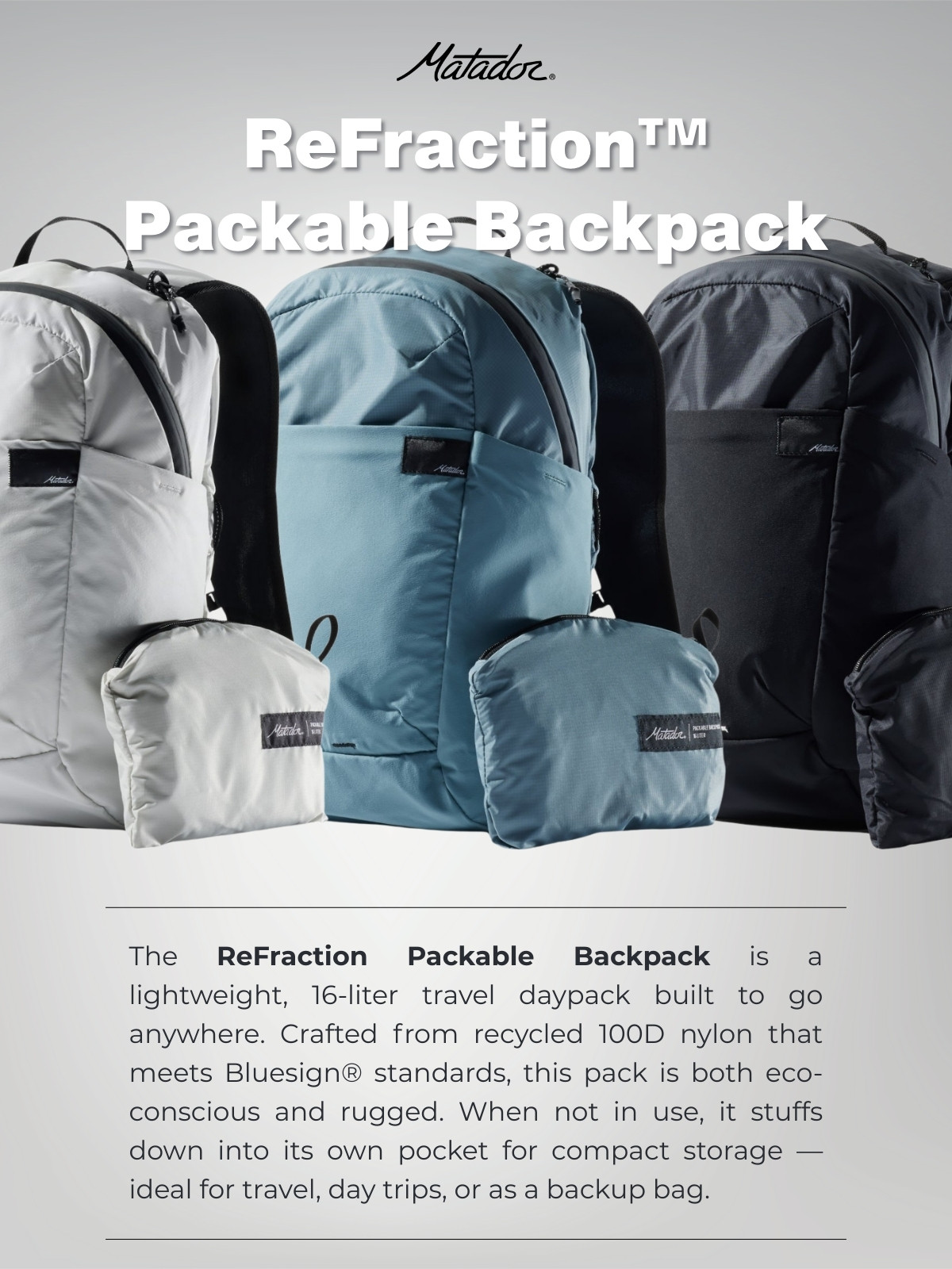 Matador Refraction 16L Packable Backpack Weather Resistant Material for Travel & Outdoor Equipment