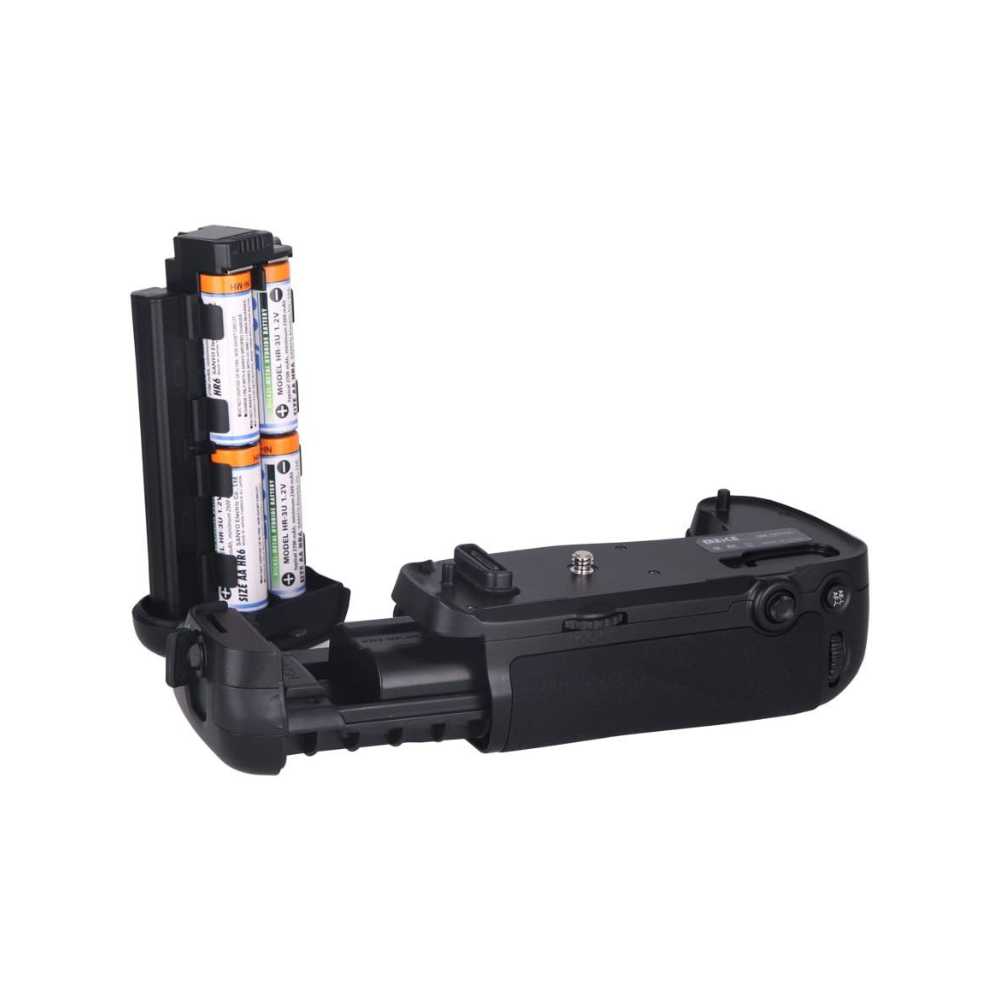 Meike MK-DR750 Pro Battery Grip is a battery grip designed for use specifically with the Nikon D750 DSLR camera and accepts one Nikon EN-EL15 battery. With two batteries installed (in the camera and battery grip at the same time), your shooting time is effectively doubled. Moreover, when one battery is drained, it can be removed and recharged while you continue shooting with the other battery. In addition, the MK-D750 Pro grip can utilize 6 AA batteries (NiMH or alkaline) and comes with a battery tray designed to hold 6 AA/LR6 batteries, meaning that the universally available AA batteries can be used in the event that your lithium ion batteries fail.