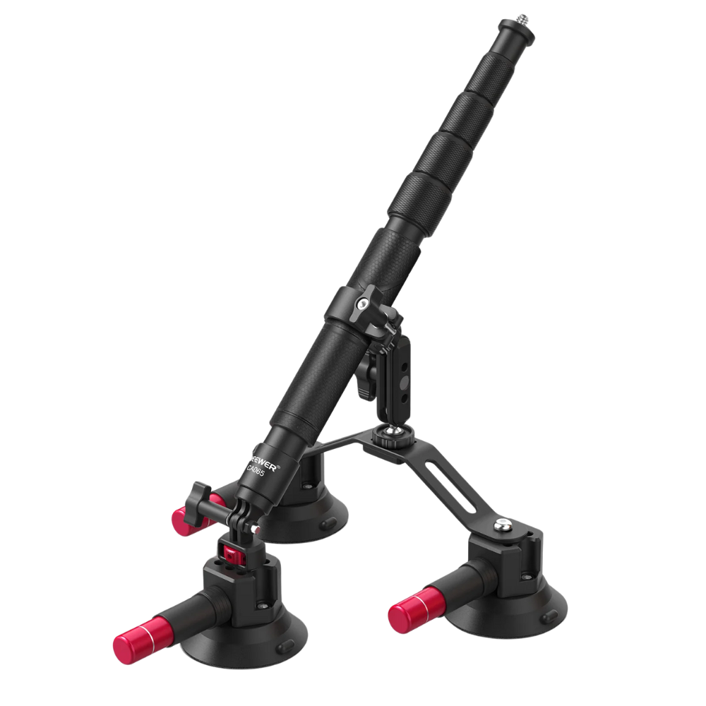 ● Capture unique driving angles from your engine hood, windshield, or car side for immersive footage on the road. This suction cup camera mount securely attaches your action camera with three powerful suction cups, and position it using the extension poles and the ball head magic arm for various shooting perspectives.