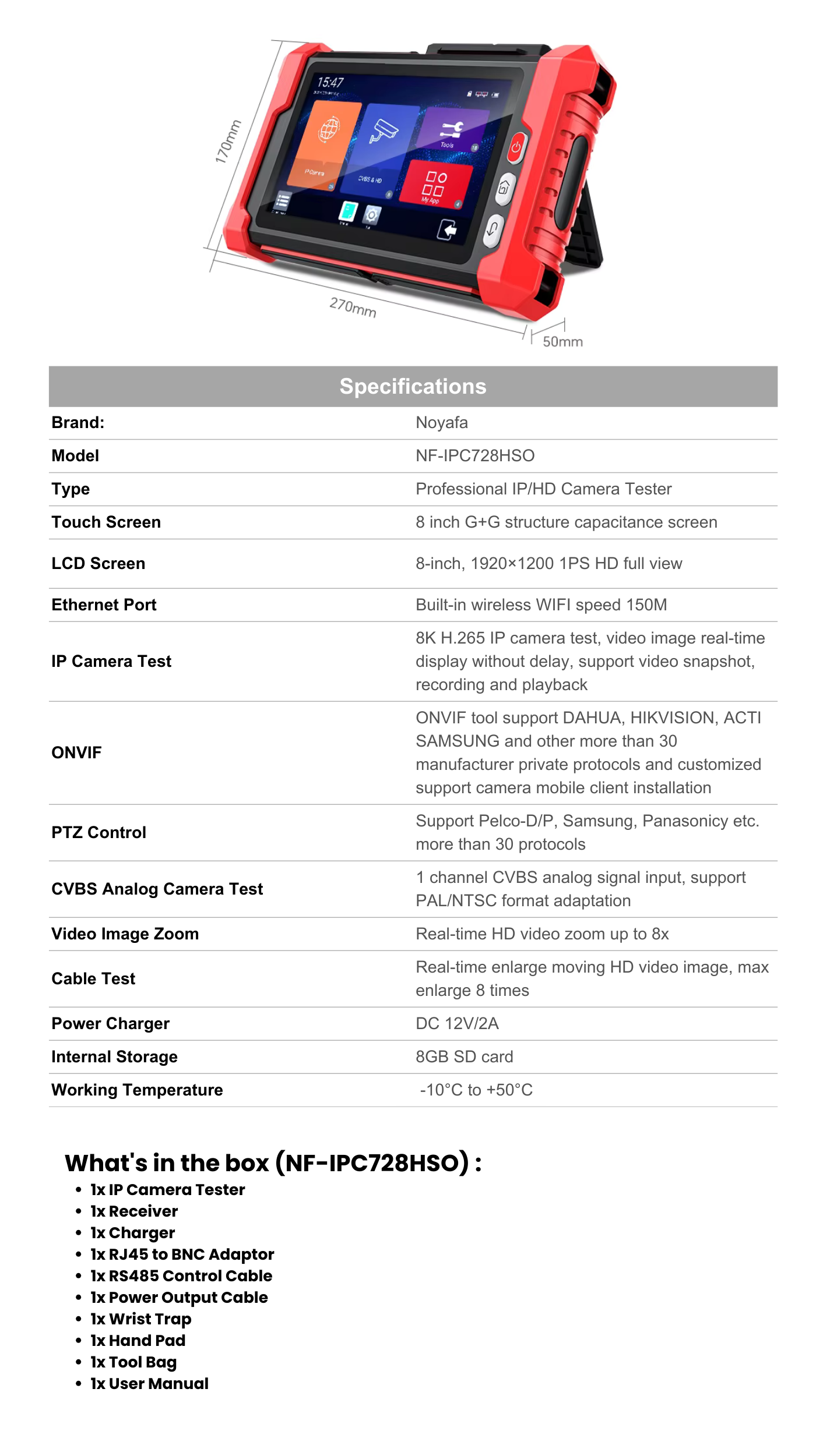 What's inside the box (NOYAFA NF-IPC722ATCHS)?