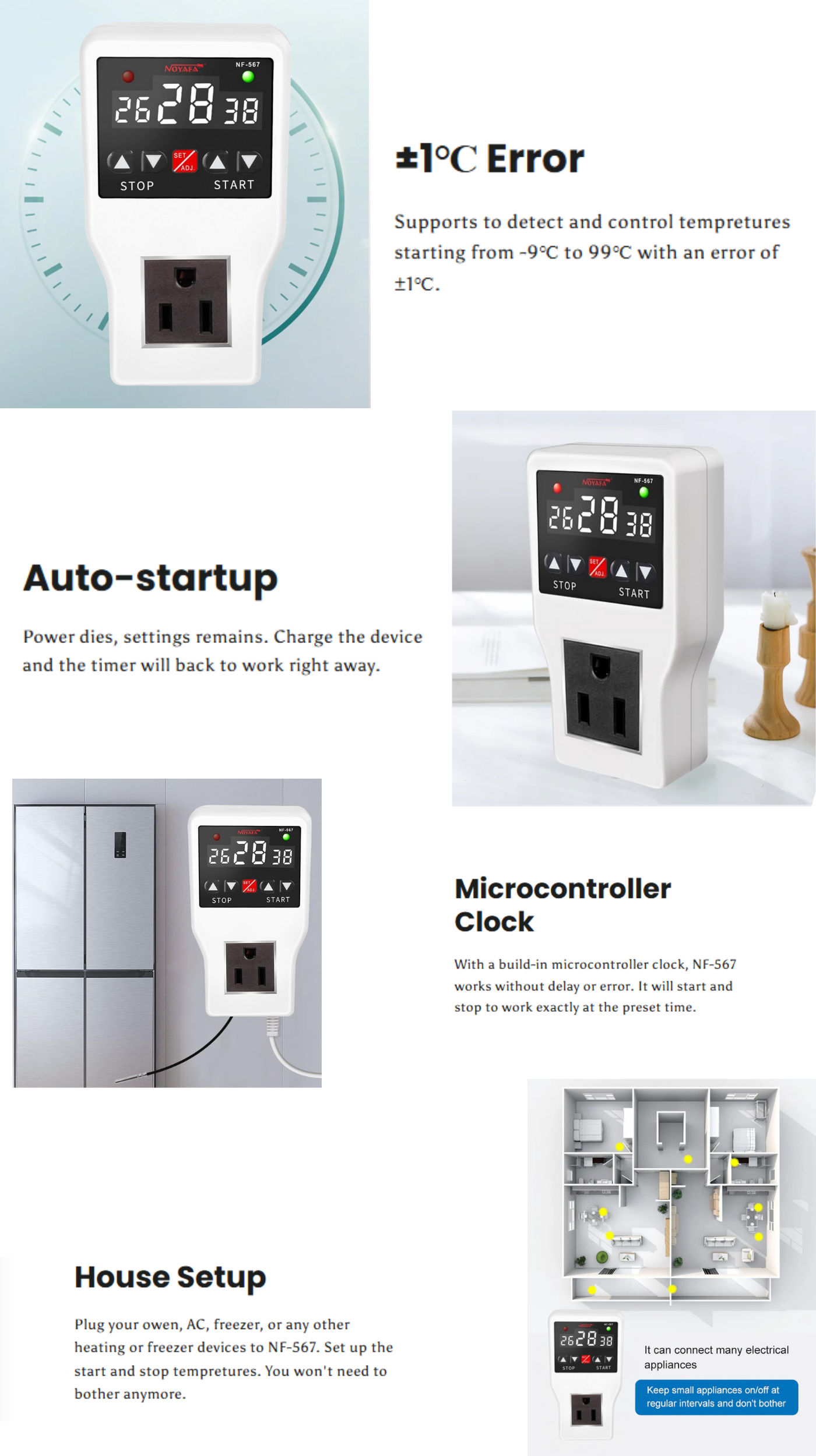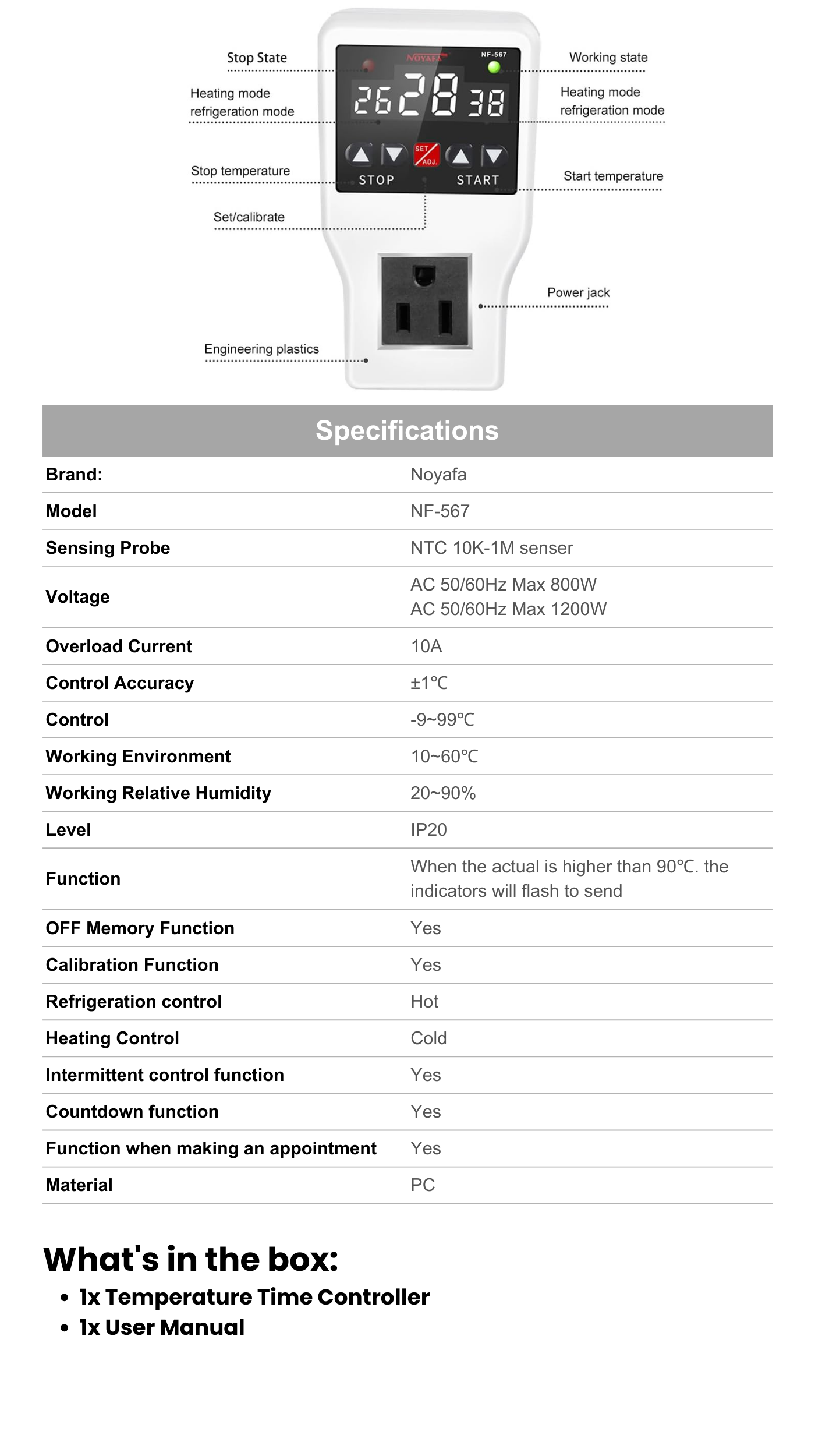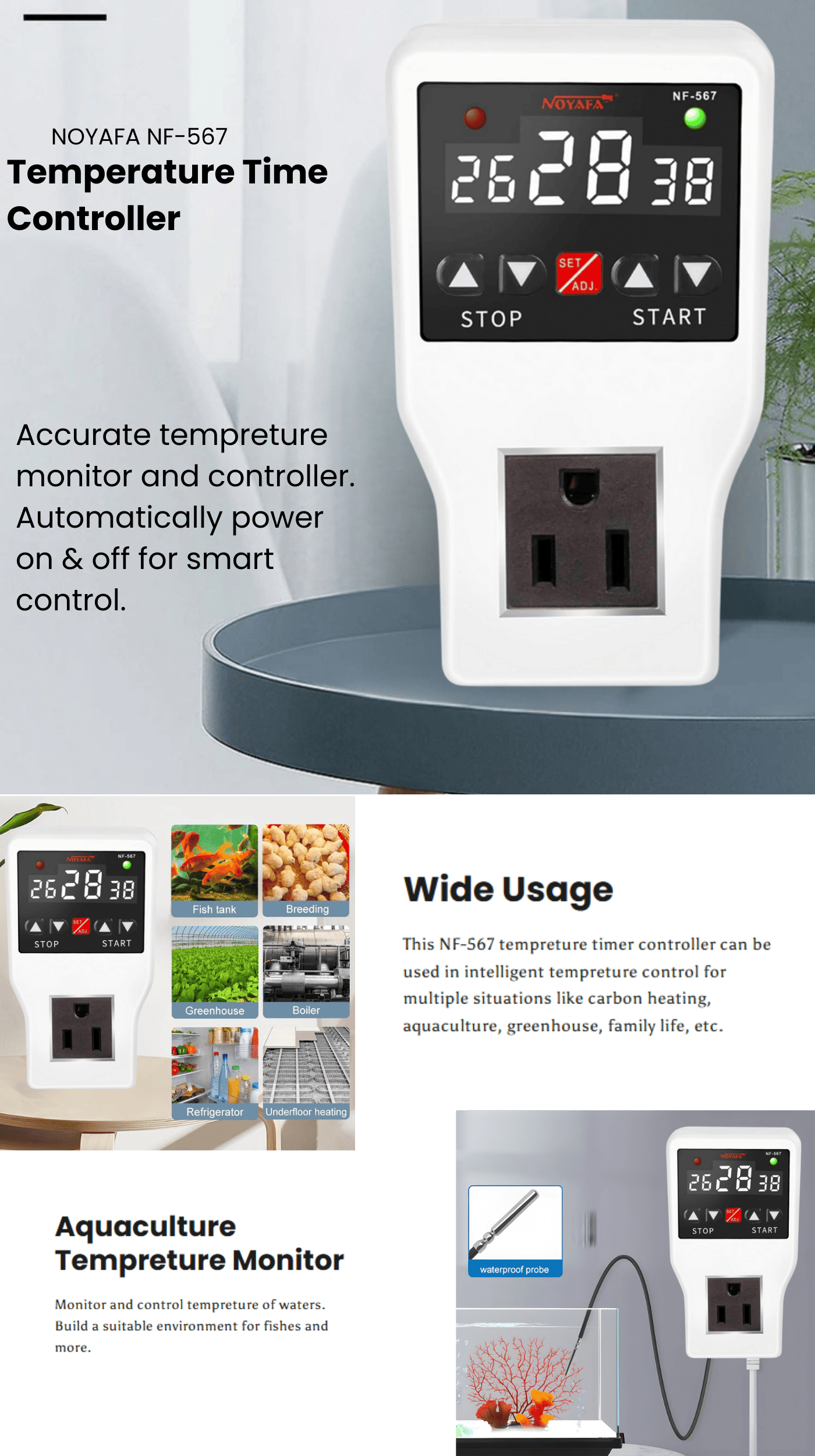 - Precise digital temperature controller with wide -9 to 99°C range