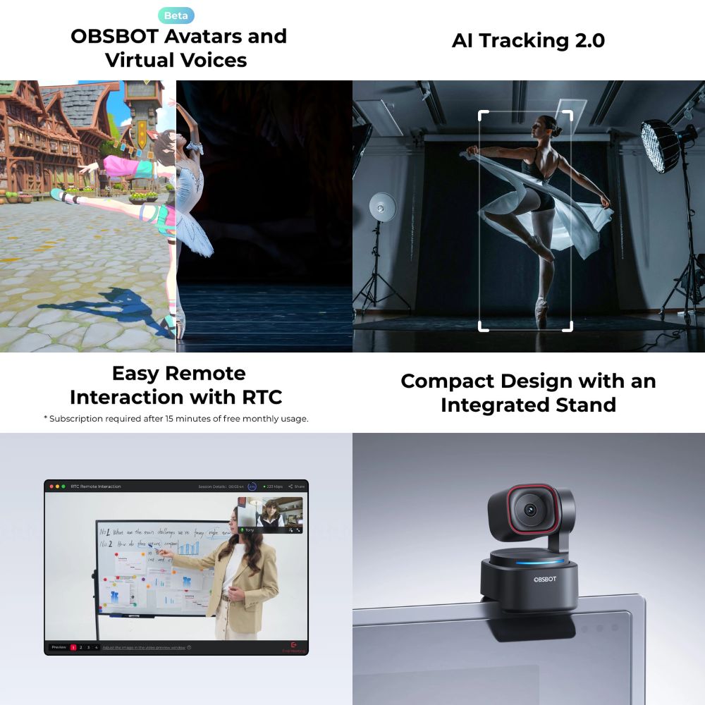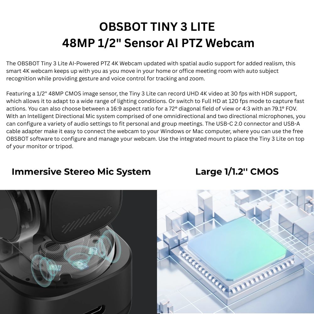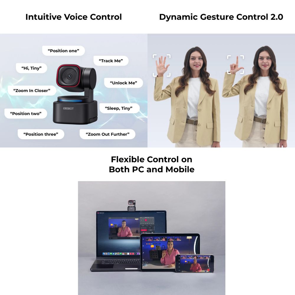 • USB 2.0 Connectivity with OBSBOT Center/Live for Windows 10 & macOS 11 or Later Software