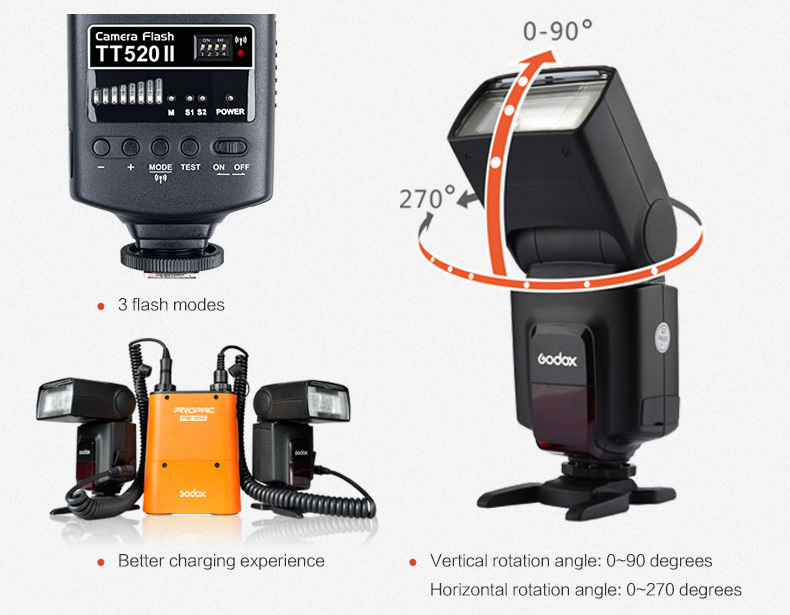 • 8 variable flash output from 1/128 to full, meeting your flashlight demand