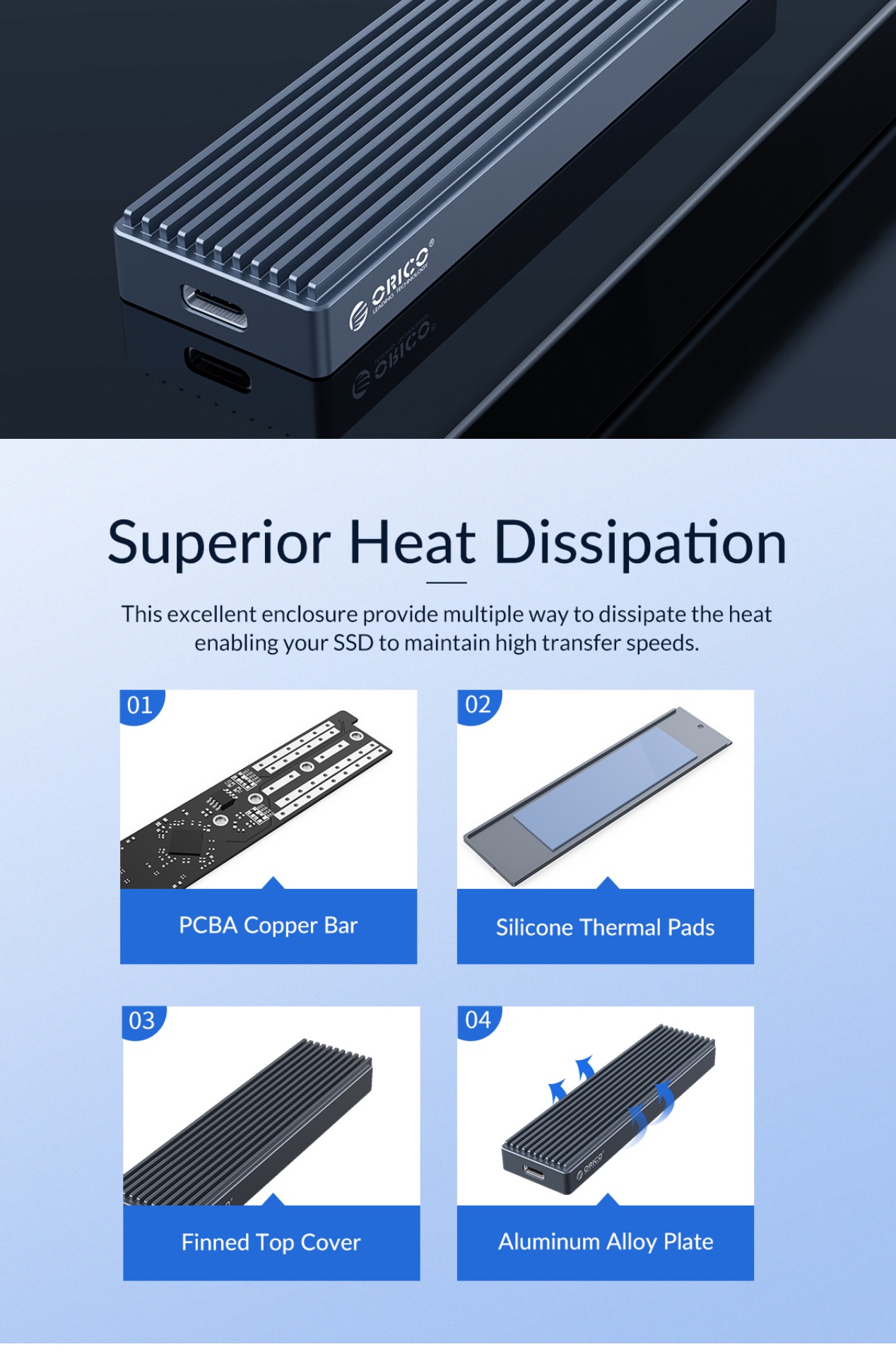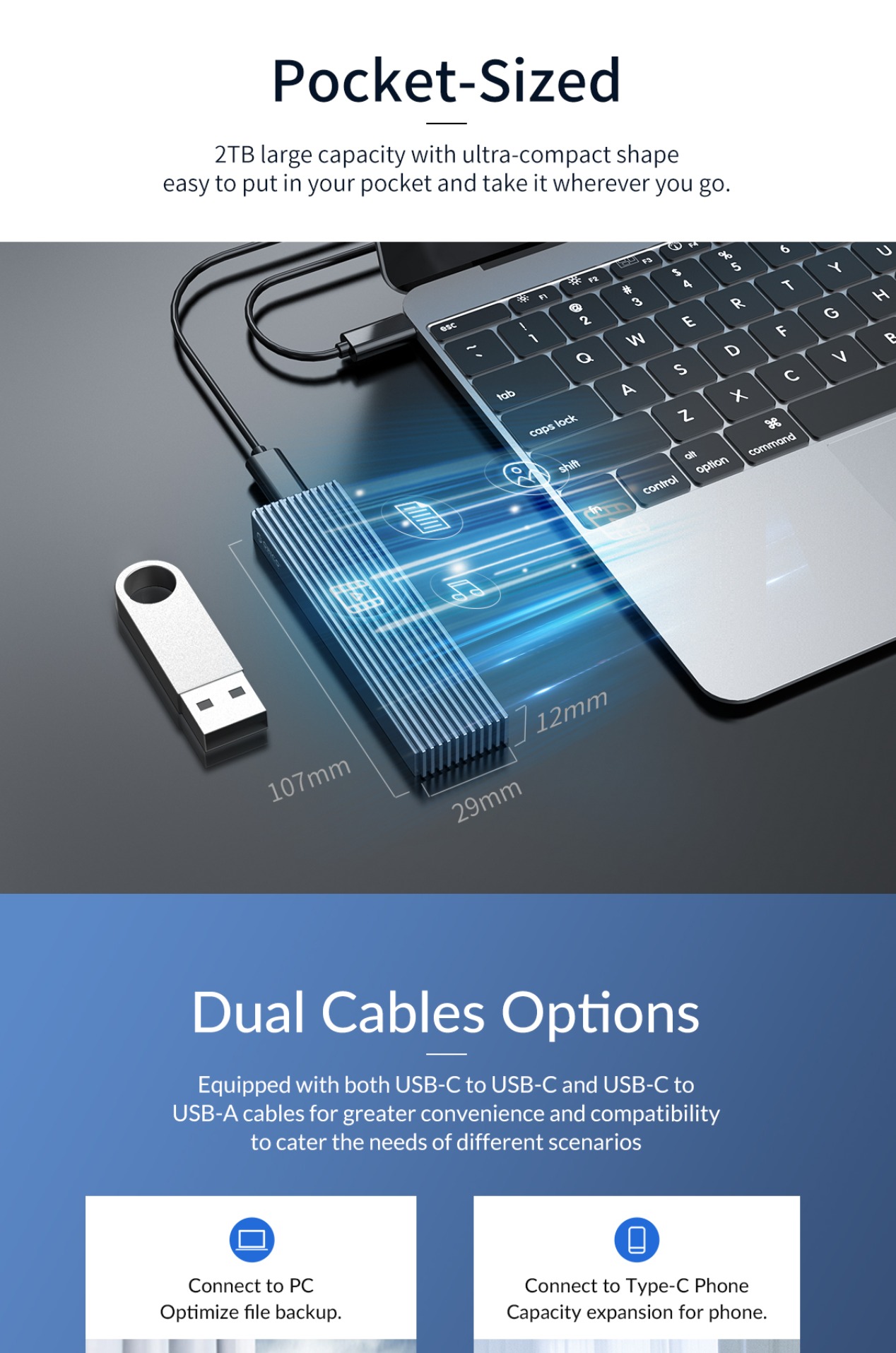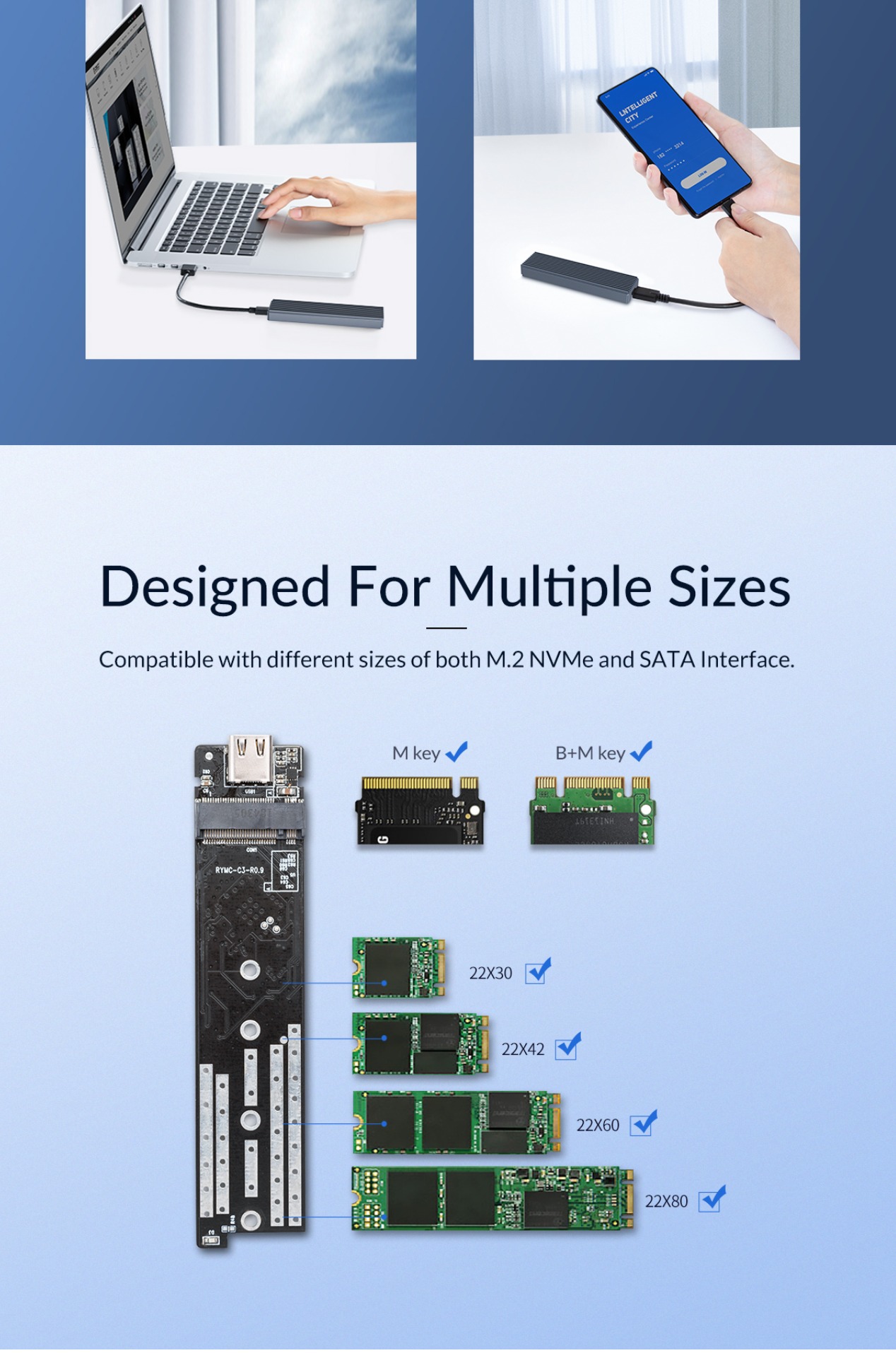 ORICO M.2 NVMe / SATA SSD to USB 3.1 Gen 2 Type-C Aluminum Solid State Drive Enclosure (M-key / M&B-key) with 10Gbps Speed, 2TB Supported Storage, and Support for Windows, macOS, and Linux for PCs, Desktop Computers, and Laptops