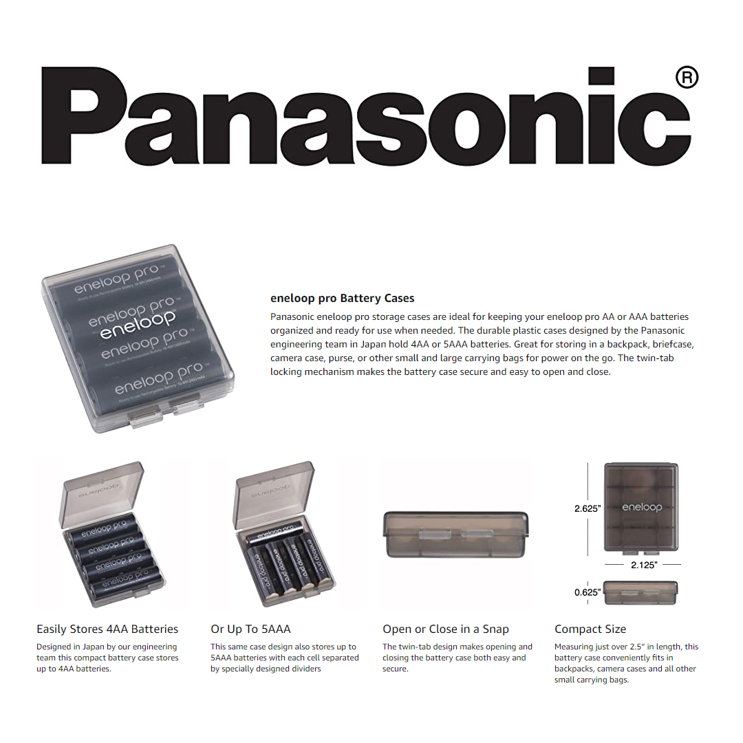 INGENIOUS DESIGN: Each eneloop pro battery storage case can house up to 4 AA or 5 AAA eneloop pro or eneloop rechargeable battery cells