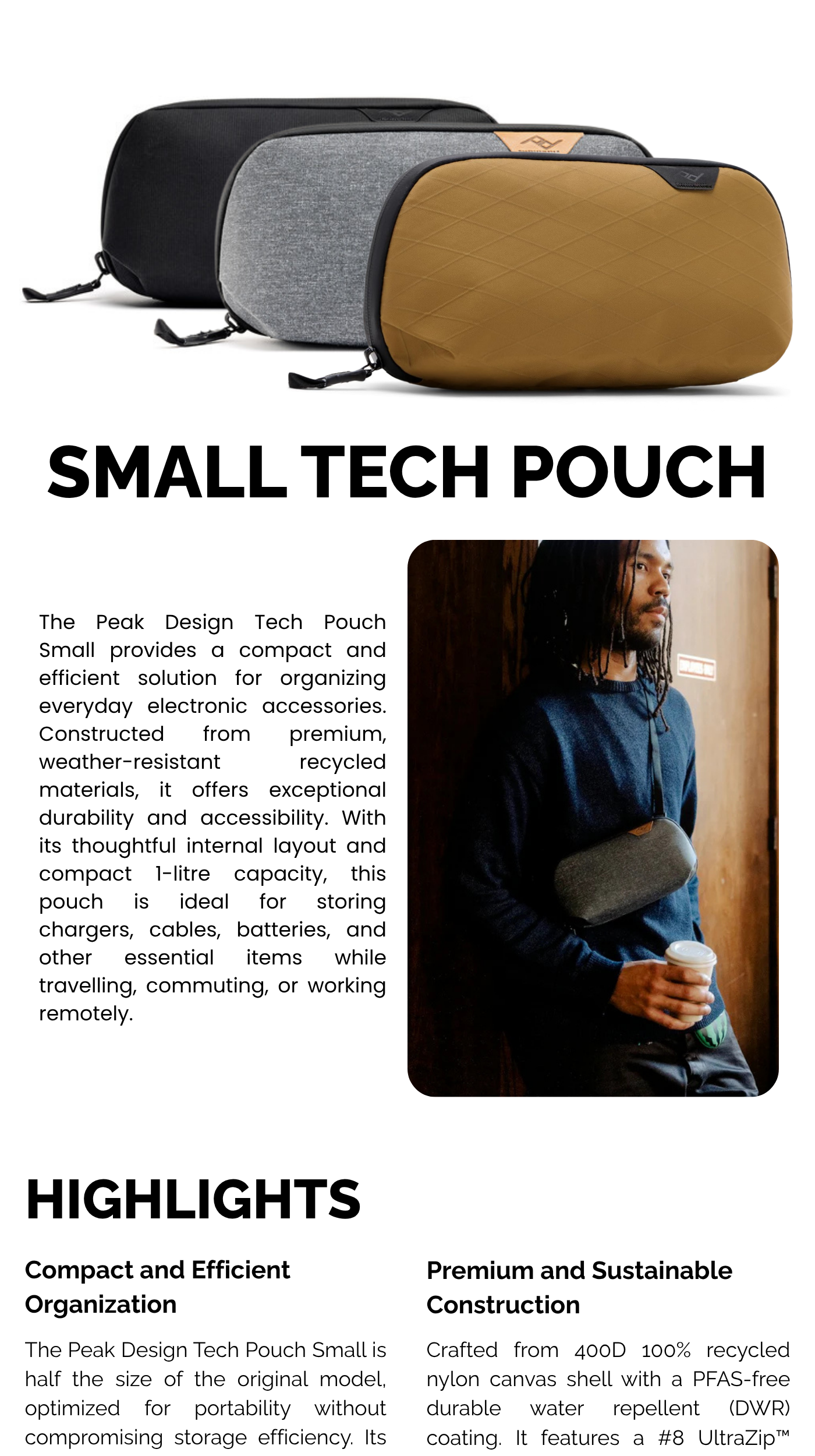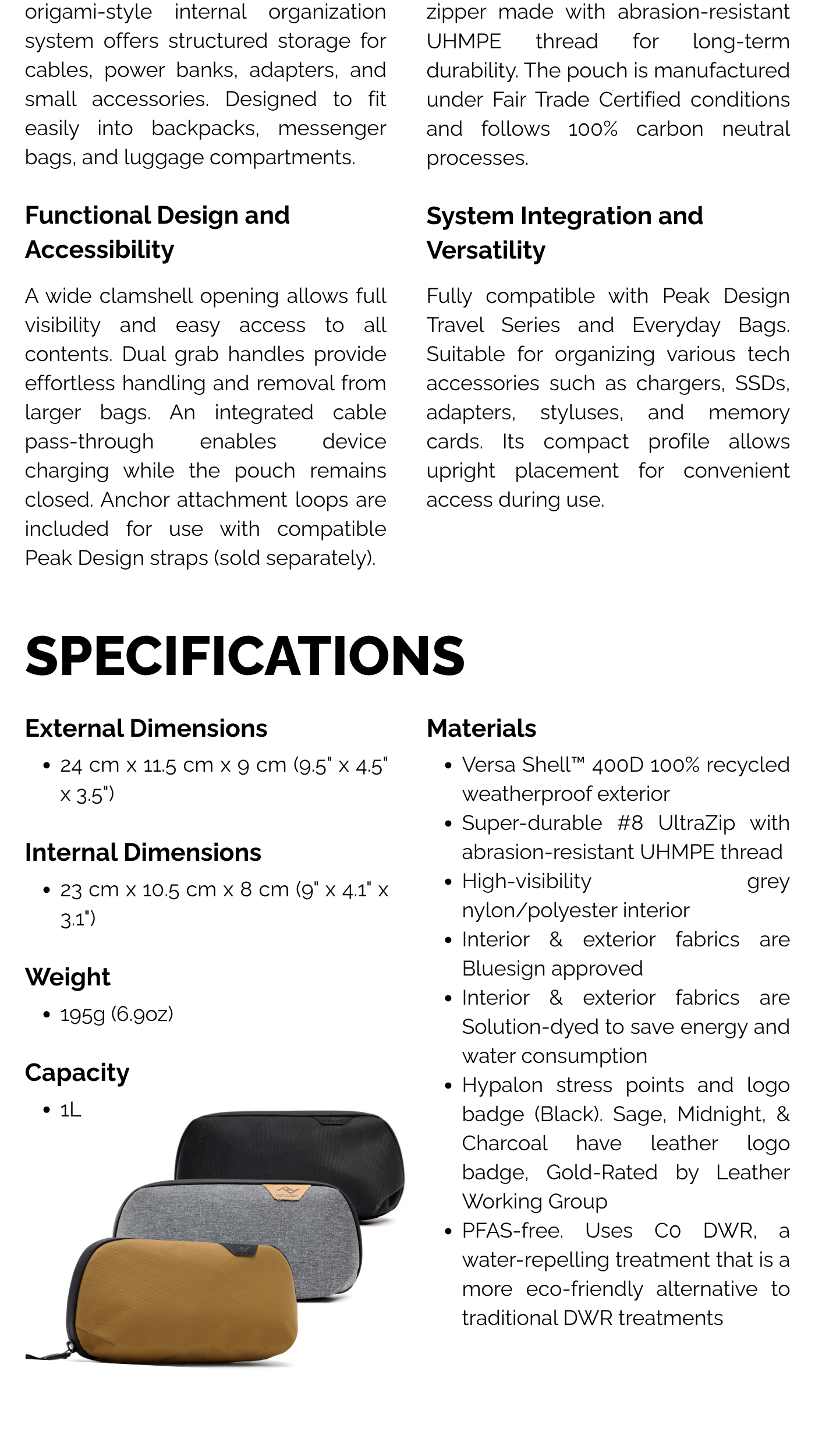 Peak Design 1L Small Tech Pouch Organizer Bag