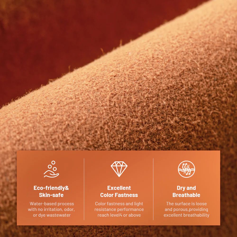 ● Automotive-grade eco-friendly microfiber with grade 4+ color fastness and light resistance; meets OEKO-TEX® STANDARD 100 for infant products.