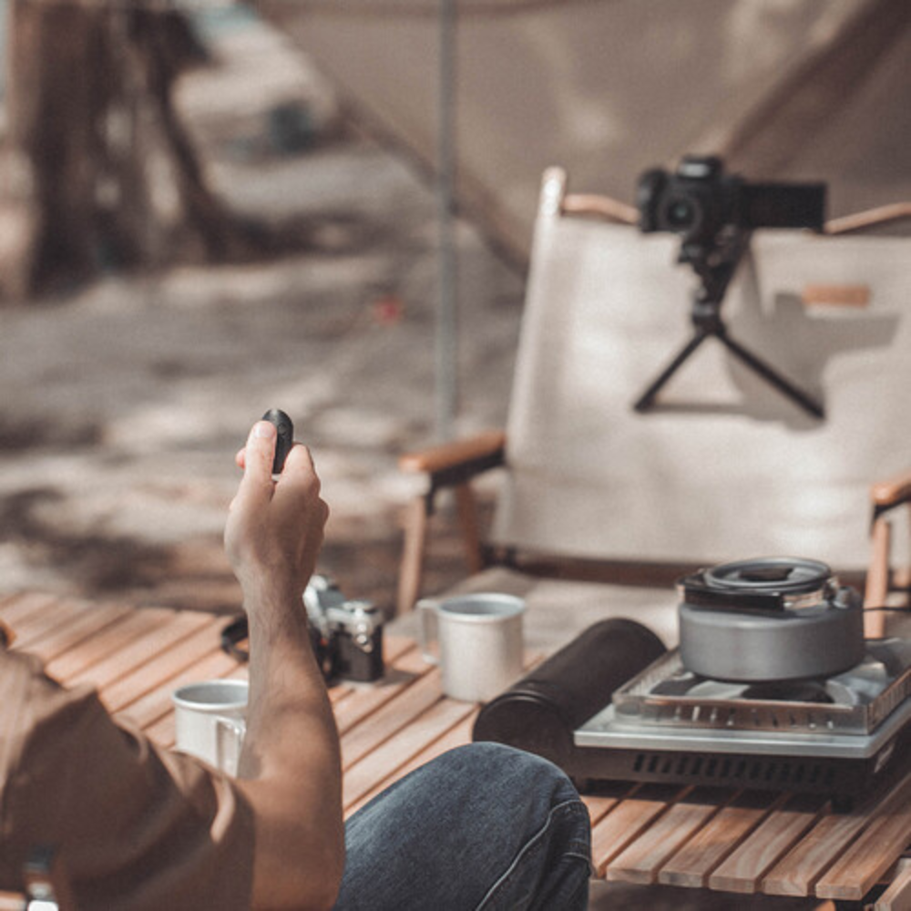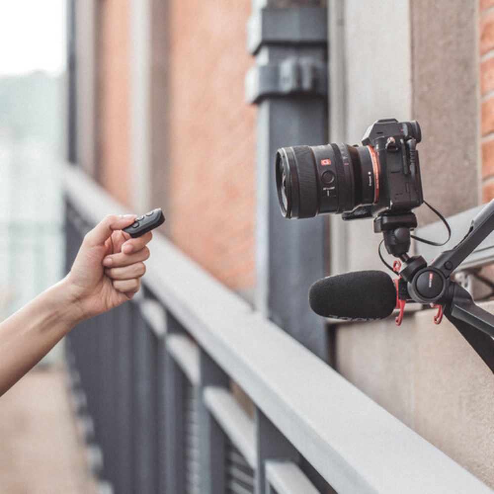 The RC M1 magnetically nests into select MantisPod 2.0 tabletop vlogging tripods, acting as a convenient, ergonomic control panel.