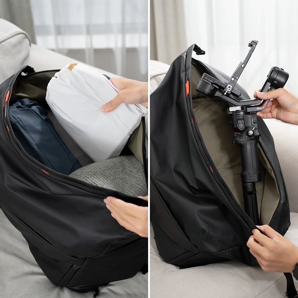 ● Expandable Storage: Front compartment adds 15L capacity with adjustable divider for larger items.