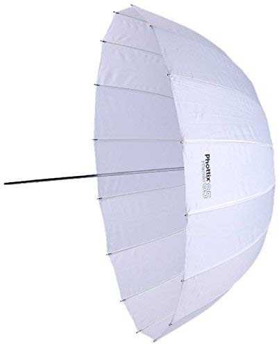 - Phottix Premio Parabolic Shoot-Through Umbrellas are available in 85cm/33" and 120cm/47" sizes.