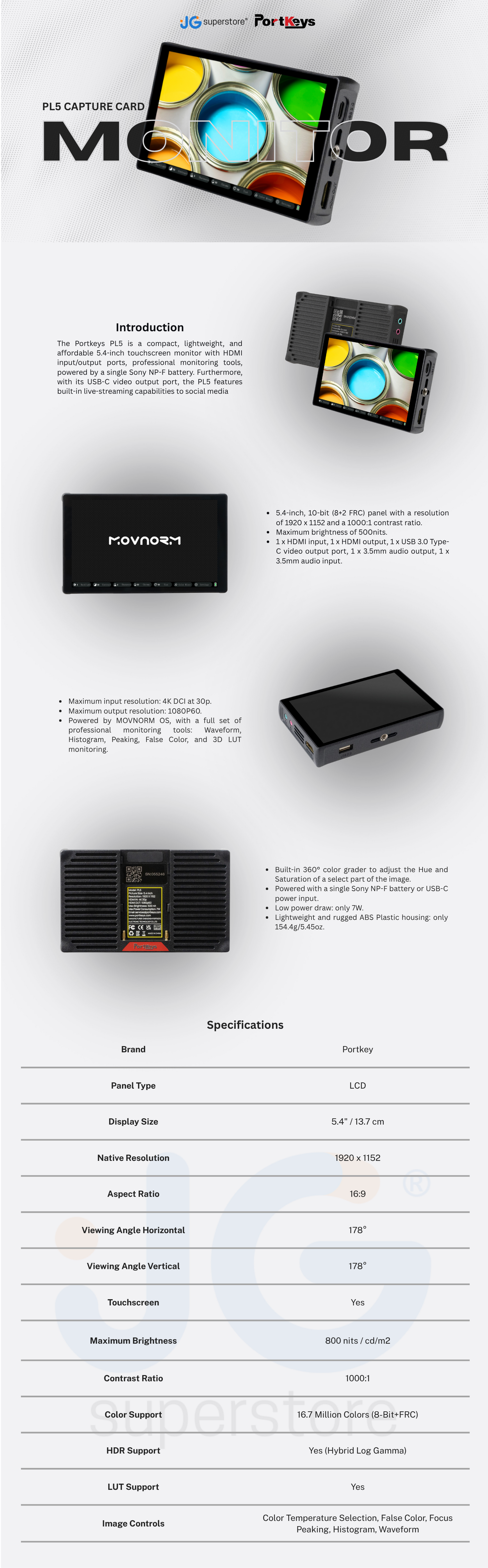 PORTKEYS PL5 5.4" 4K HDMI Touchscreen Monitor