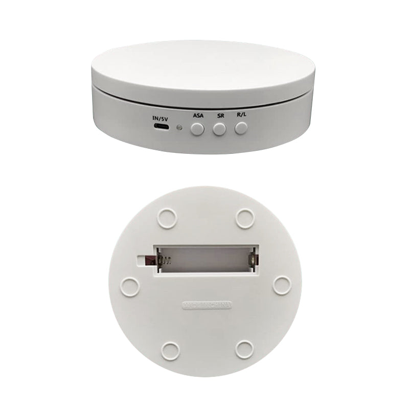 You can control the speed and adjust direction or angle. The turntable supports three speed regulation, which are 8s/15s/30s/r; R/L: Switch to clockwise or counterclockwise; IN 5V: Type-C-USB 5V DC IN; It uses a upgrade high-quality motor, the rotation is smoother, quieter, and very practical.