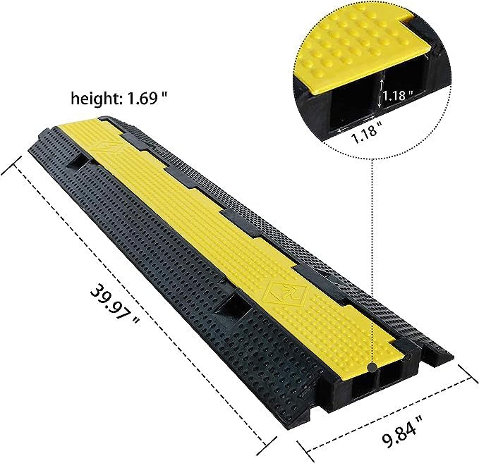 Each ramp features a 2-channel design for internal cable arrangement and interlocking segments to easily expand your coverage by chaining additional cover ramps. With durable polyethylene plastic construction and a convenient anti-slip textured surface, this cable cover is versatile enough to handle many indoor or outdoor environments and can be particularly useful for on-site A/V production, studios, retail environments, and more.
