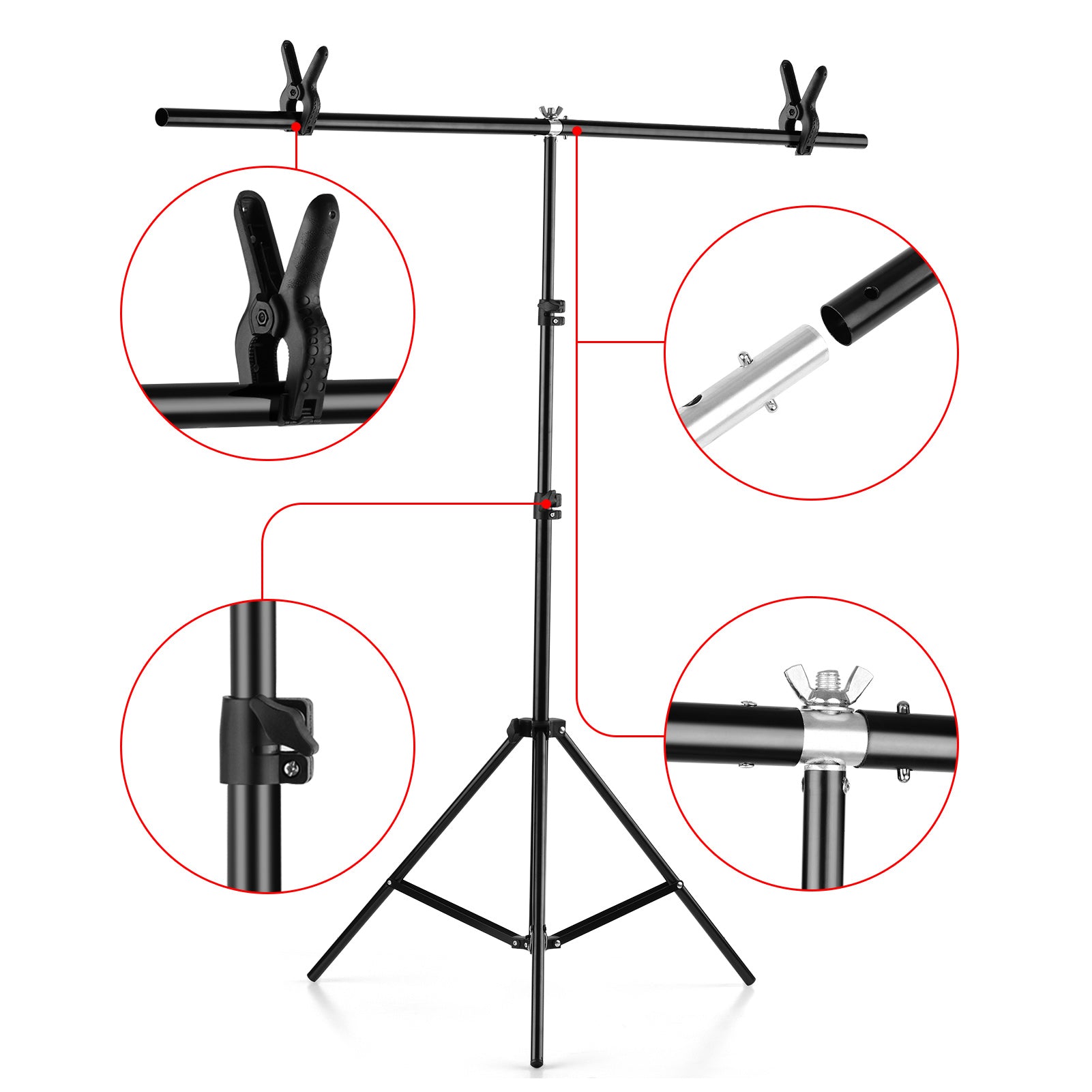 - The background stand is mainly constructed from aluminum alloy, stable and durable, giving it exceptional strength for heavy duty work.