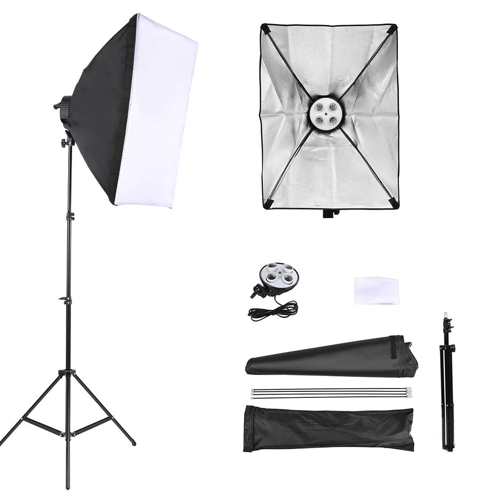 [CLEARANCE] Pxel LS-SB-4B KIT 1 4-Socket 50x70 cm Softbox 1(pc), 4 pcs 150W Bulb, 1 pc 200cm Light Stand for Photography, Studio Lightings and Videography