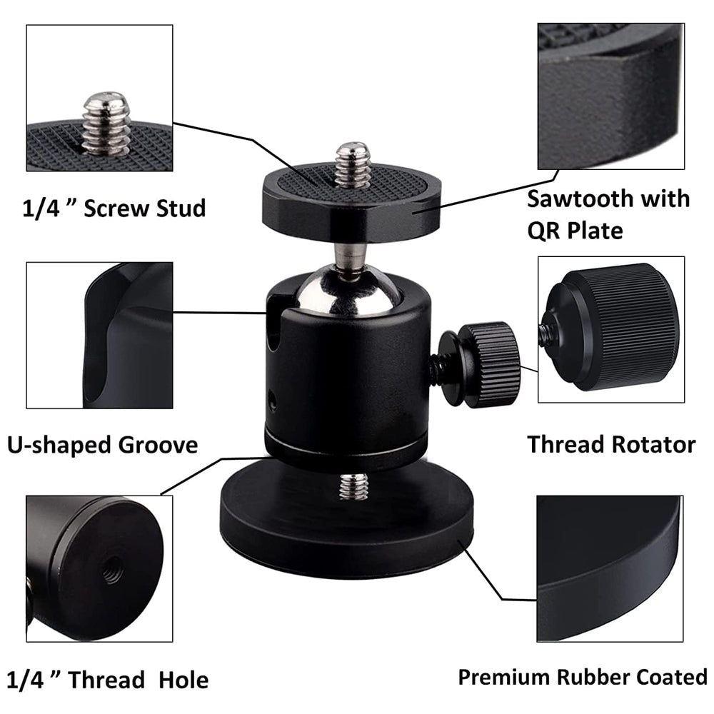 Ball Heads: Mini ball heads with 360° rotation and tilt adjustments