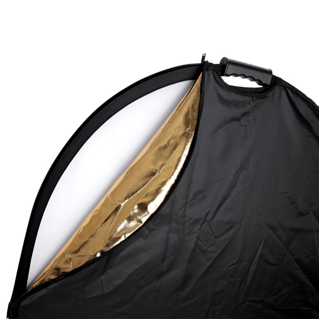 Adding dimension to your subject, whether a product or a portrait, is easy with this fix-sized reflector set. The round translucent disc can be used on its own as a diffuser or with the 4 other surfaces. It comes with a gold, white, black or silver surface. Changing is easy with a single zipper system that allows you to add or remove which ever surface you desire. With this 5 in 1 system you will have a variety of ways to modify the light for your subject. With gold, white, and silver you can add light that is warm or cool. And the use of the black surface makes it possible to create shadow and dampen harsh lighting conditions.