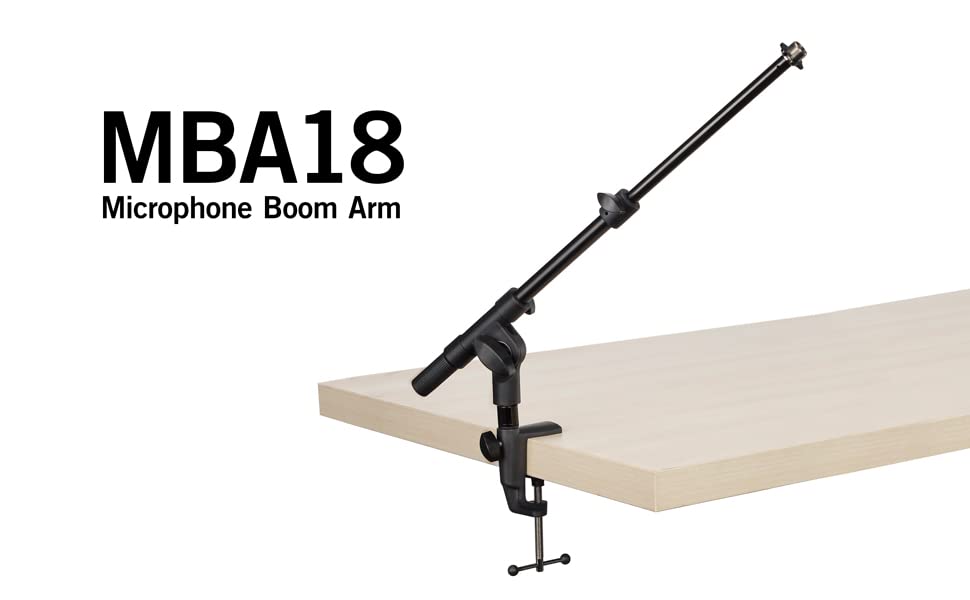 - The Samson MBA18 Microphone Boom Arm is the perfect microphone accessory for any radio, podcast or home studio setup. The telescoping design of the MBA18 provides a maximum horizontal/vertical arm reach of 18", giving users convenient flexibility with their mic placement. The mic book arm easily attaches to a table or desk via its C-clamp mount, which offers a maximum grip of 2". In combination with its iron and plastic construction, the MBA18 offers 5/8"-27 mic clip threading that can accommodate any mic weighing up to five pounds