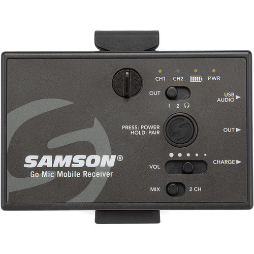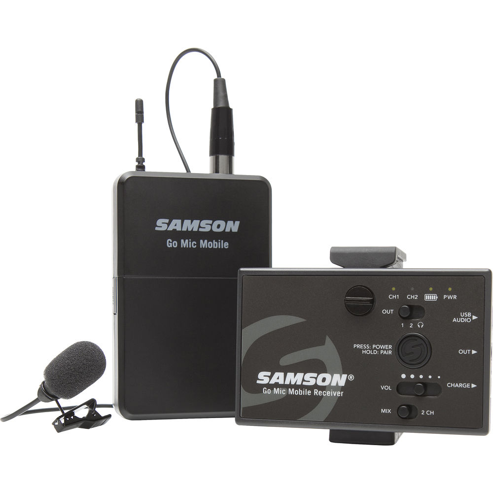 • Designed for mobile filmmakers, the Samson Go Mic Mobile System provides both a dual-channel receiver and a transmitter in the form of an LM8 lavalier and belt-pack transmitter. The receiver, which is dual-channel, can mount directly to your smartphone or DSLR camera, and allow you to transmit 48 kHz audio directly to the destination of your choosing.
